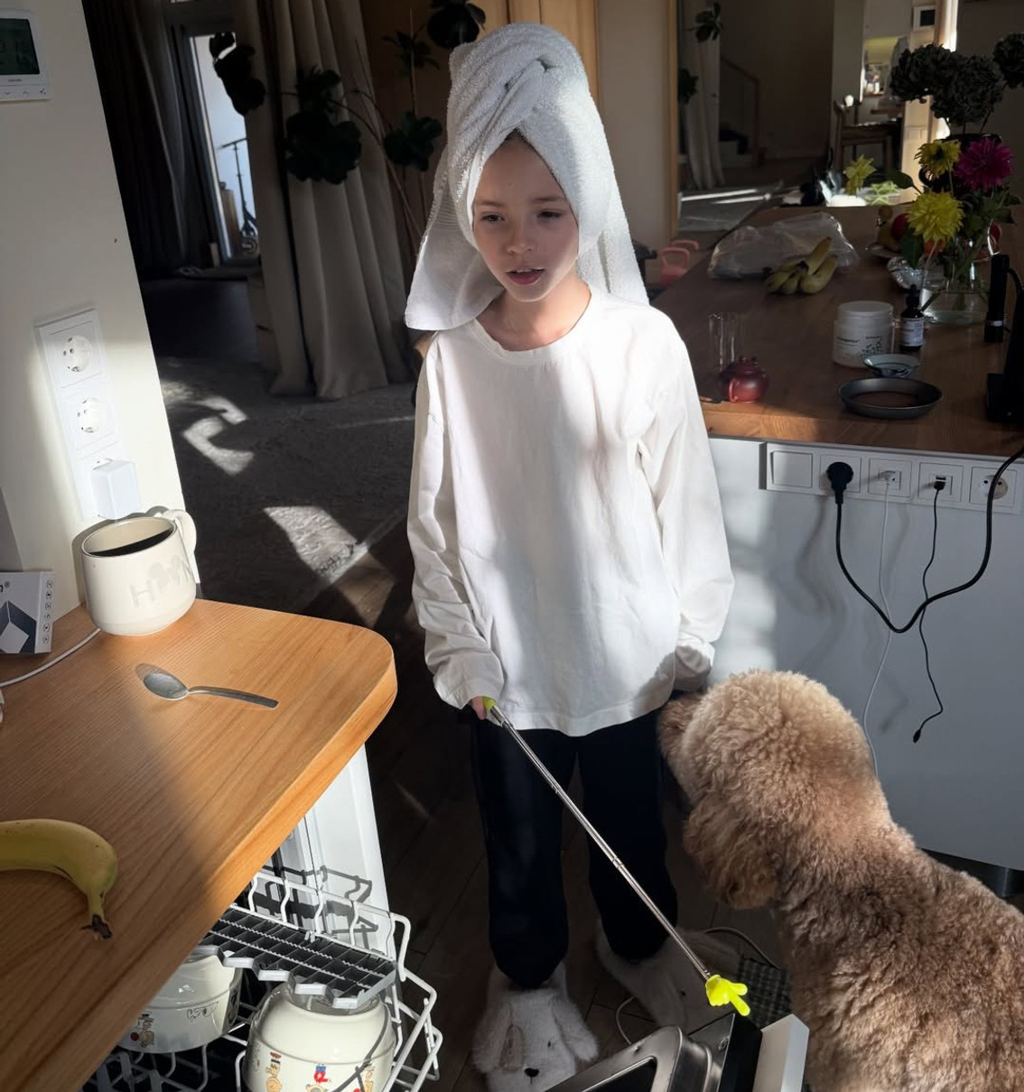 Саша кумедно попозувала з указкою на кухні