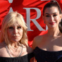 Енн Гетевей у темно-синьому оксамиті з прозорими вставками на корсеті позувала на червоному хіднику разом із дизайнеркою Донателлою Версаче