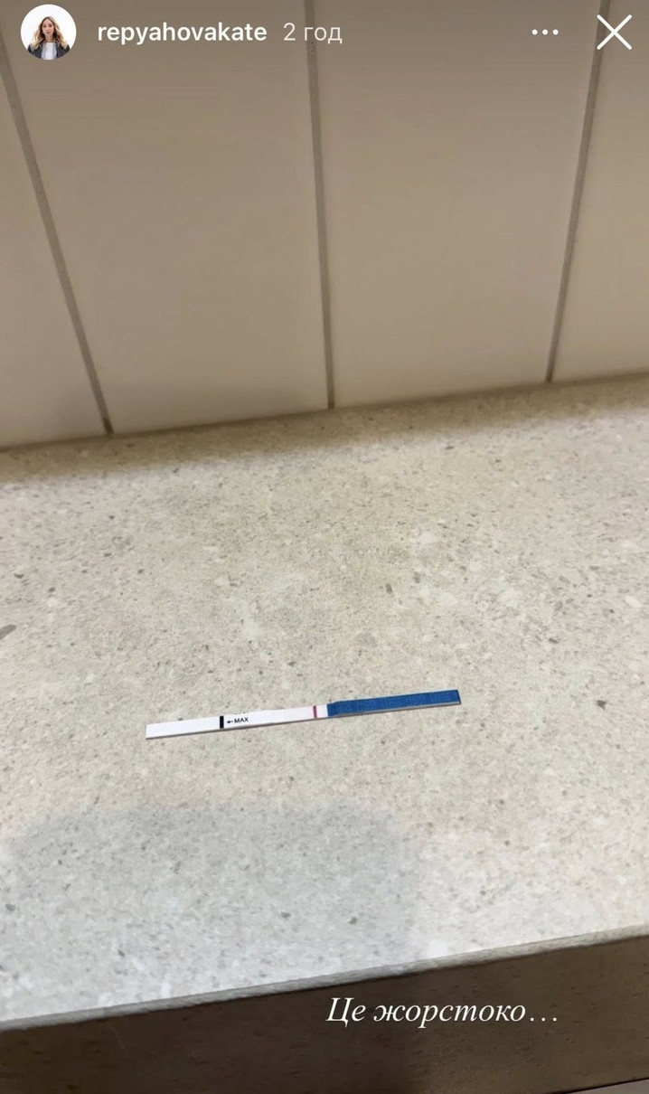 Особистим 31-річна Катя поділилася в сторіс, показавши фото тесту з однією рискою, яка вказує, що жінка не при надії.