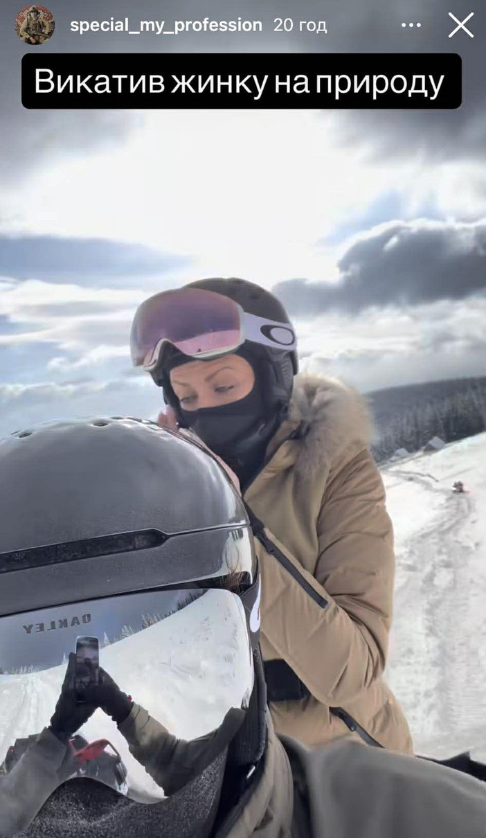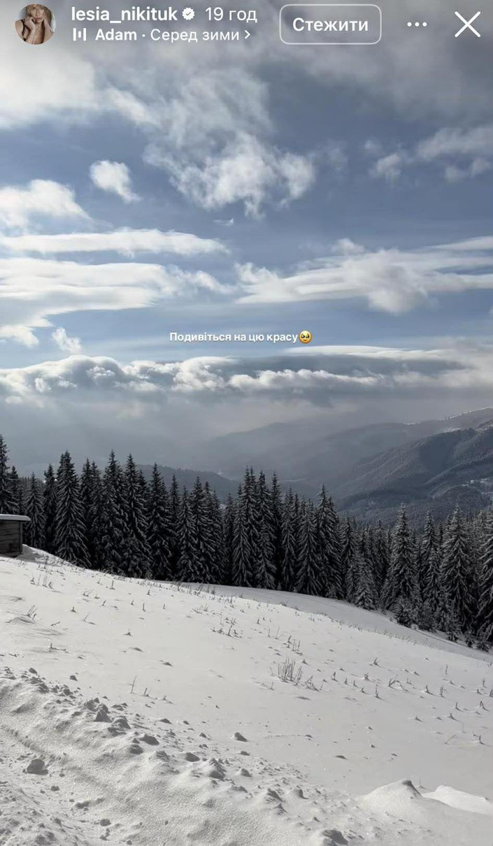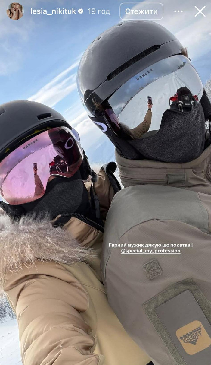 Телеведуча Леся Нікітюк та її наречений, військовослужбовець Дмитро Бабчук у Insta-сторіс показали, як ганяють на квадроциклі засніженими Карпатами.