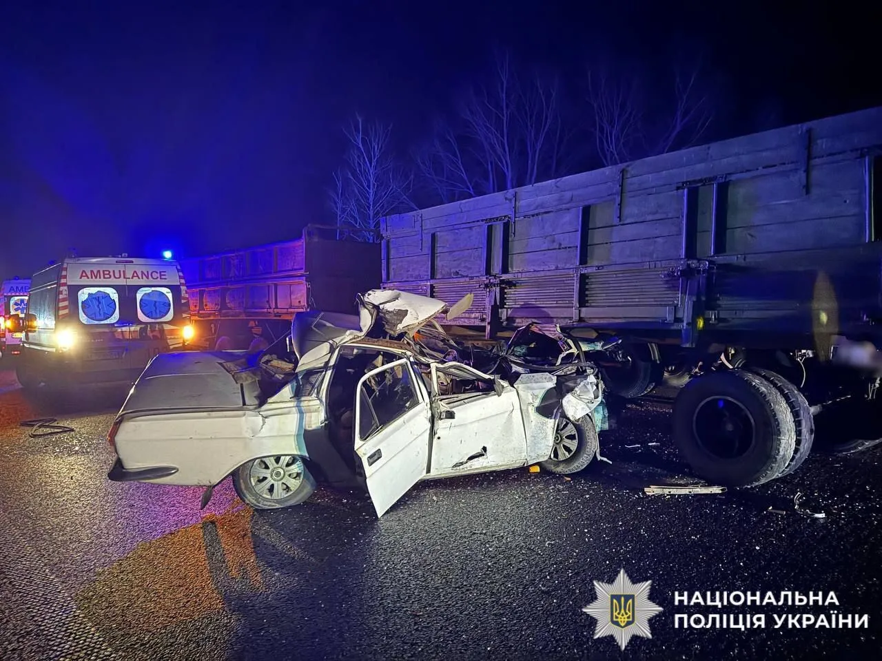 "Поліцейські попередньо встановили, що 39-річний водій легковика "ГАЗ", перебуваючи у стані алкогольного сп’яніння, допустив зіткнення з причепом, який був приєднаний до вантажівки, під керуванням 36-річного чоловіка", – розповіли в пресслужбі.