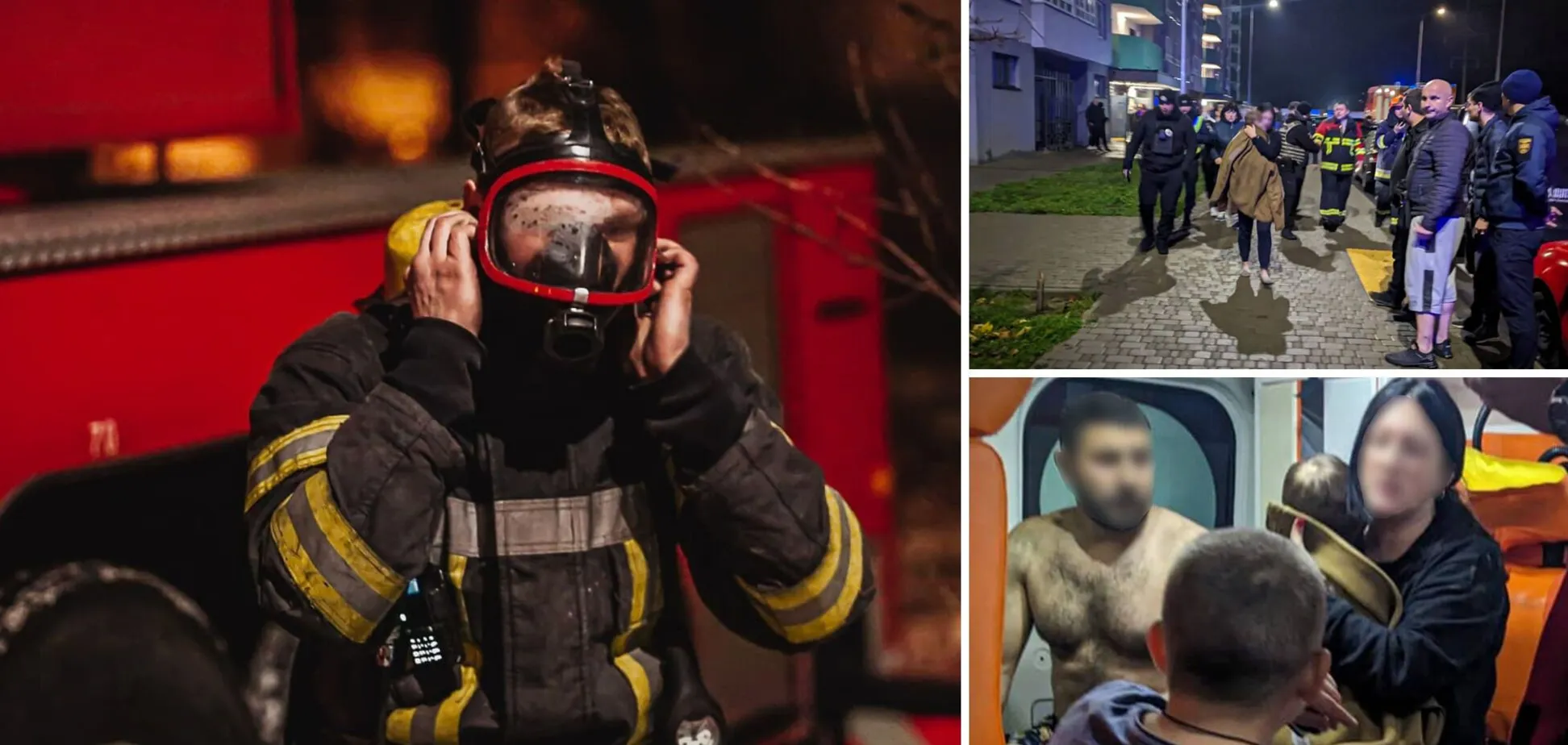 Рятувальники деблокували двері, вивели батьків із двома дітьми на свіже повітря та передали медикам екстреної допомоги. Малюки та батько були госпіталізовані з отруєнням продуктами горіння. Евакуйовано 62 мешканців будинку.