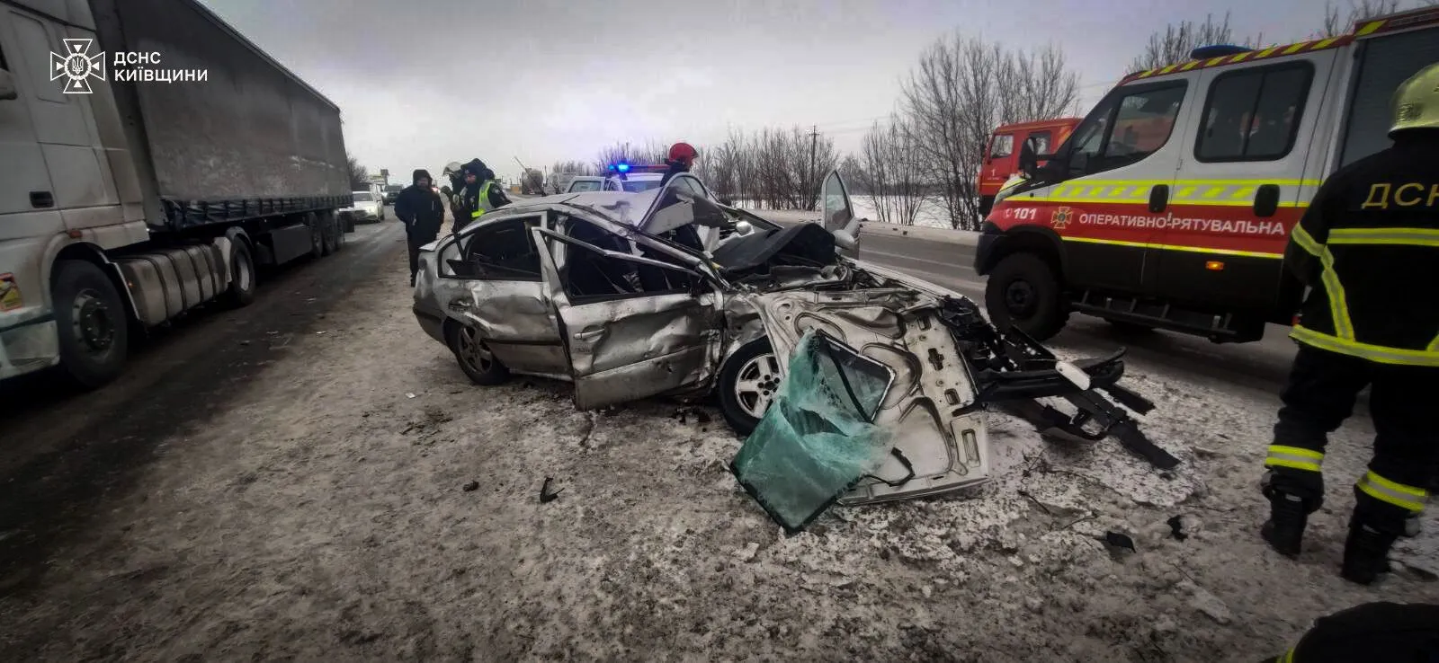 За словами рятувальників, у п’ятницю, 30 січня, о 14:41 до них надійшло повідомлення про дорожньо-транспортну пригоду, що сталася на автошляху "Київ-Одеса" на Білоцерківщині.