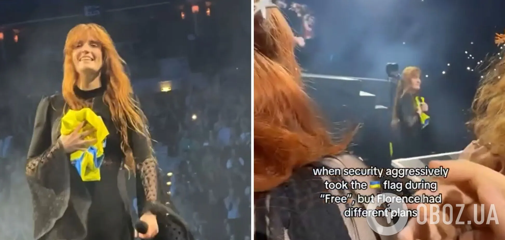Британська співачка-"королева ексцентричності" Флоренс Велч, відома вірусним хітом Spectrum ("Say my name"), під час концерту в Празі, Чехія, втрутилася у ситуацію з українським прапором, який охорона біля сцени вимагала прибрати. Артистка помітила це зі сцени, підійшла до фанатів і повернула синьо-жовтий стяг, а згодом винесла його на сцену під час виступу.