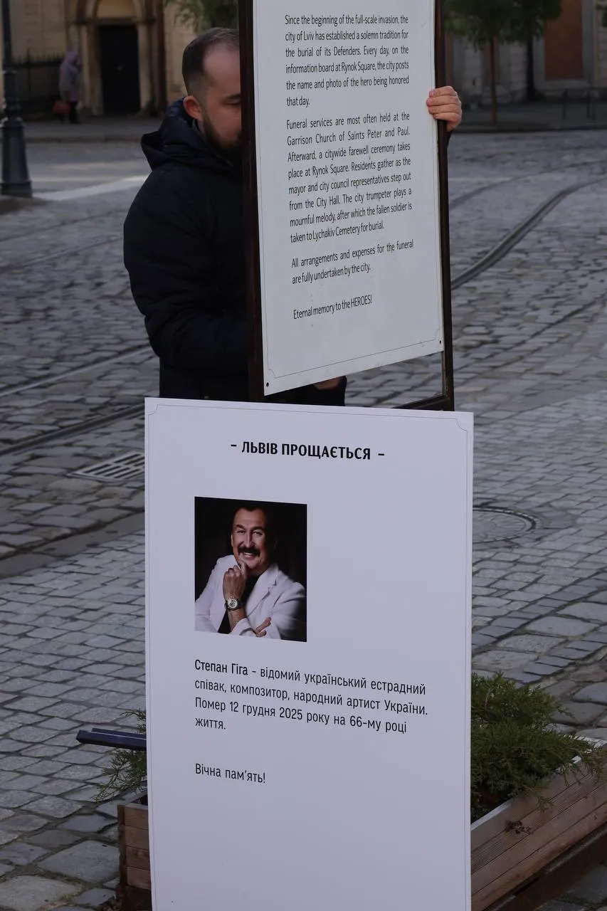 15 грудня у Львові відбулося прощання з народним артистом України Степаном Гігою, який помер у п’ятницю, 12 грудня. Місто провело музиканта в останню путь із загальноміською церемонією та похованням на Личаківському кладовищі.