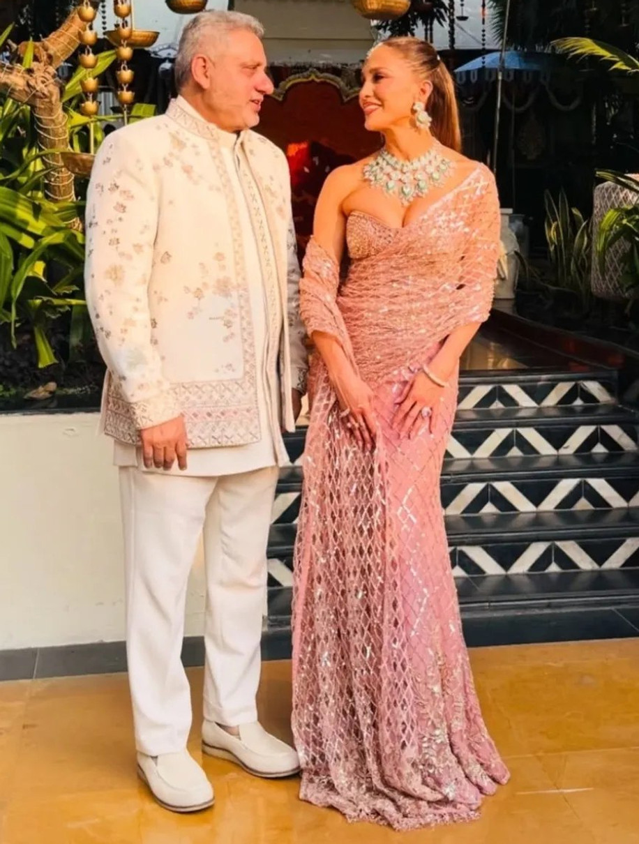 Але перед цим вона покрасувалася з іншими гостями на основній церемонії в кутюрній сукні Manish Malhotra рожевого кольору, тканина якої була інкрустована кристалами Swarovski.