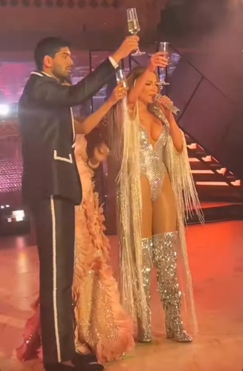 На події, яку у мережі називають "весіллям року", прийшло чимало зіркових гостей. Серед них особливо виділялася американська співачка та акторка Дженніфер Лопес, яка подарувала молодятам свій запальний виступ на сцені.