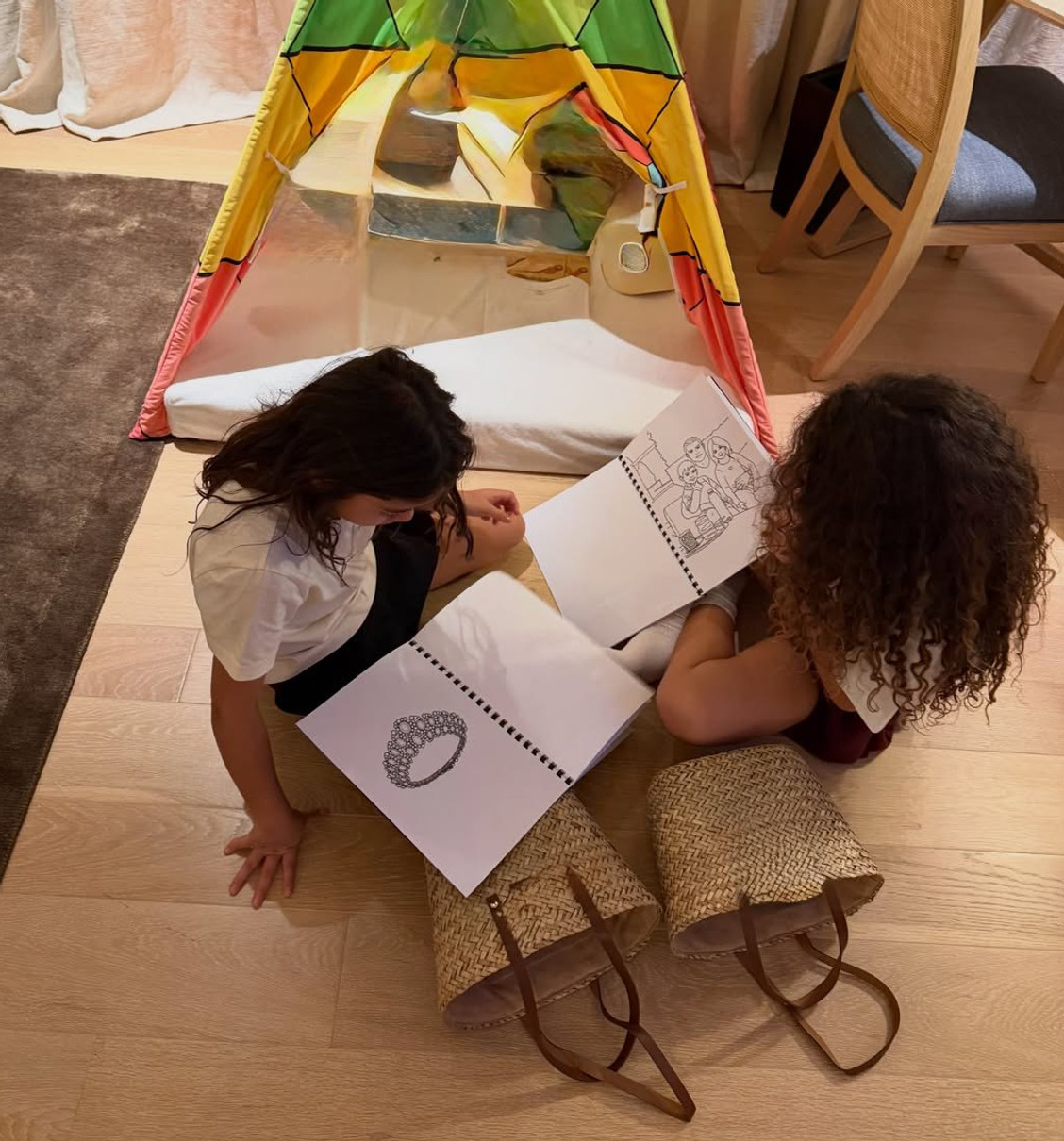 У номері дівчатка проводити час із розмальовками