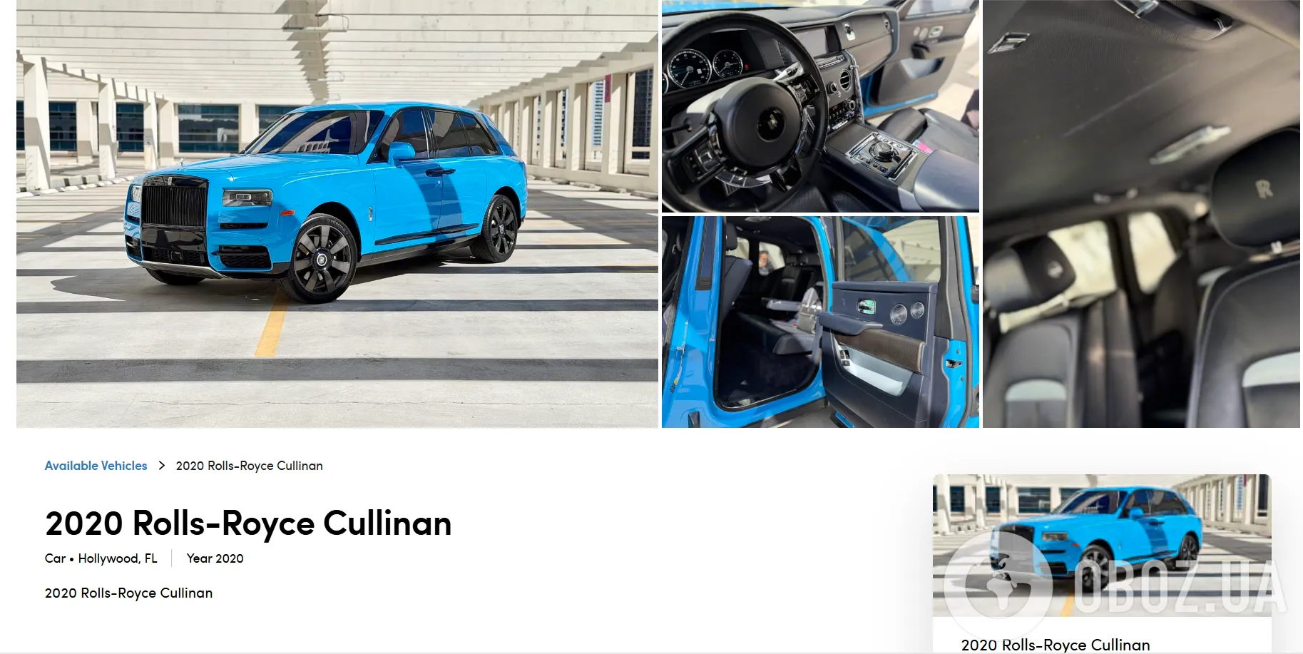 На сайті сервісу оренда Rolls-Royce Cullinan коштує 1190 доларів на день. Для порівняння, ціна такого кросовера при купівлі стартує від приблизно 400 тисяч доларів, і він входить до списку найдорожчих серійних позашляховиків світу.