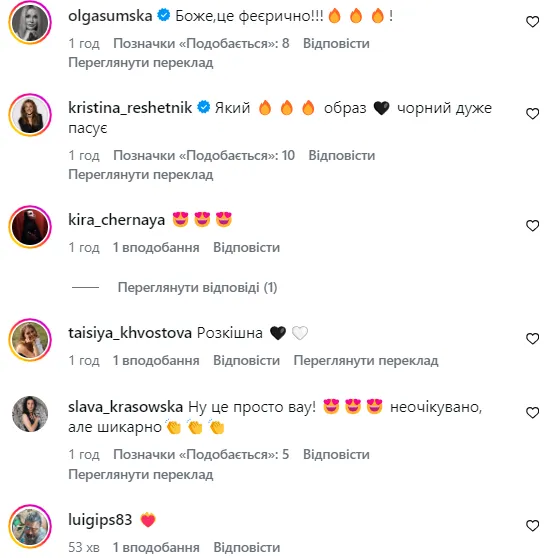 Вона також додала, що цей образ символізує завершення важливого етапу у її житті: "Це вбрання – завершення ще одиного розділу у моєму житті. Це був дуже важливий період трансформації, і я щиро йому вдячна. Зараз я відчуваю, що настав час рухатися далі. Адже кожен кінець – це новий початок".