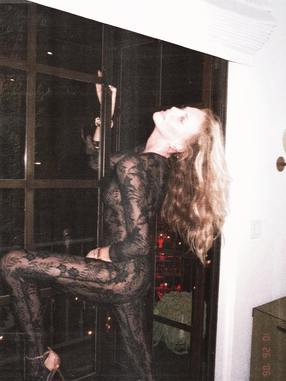 У своєму Instagram Терон виклала багато фото, на яких позує у мереживному обтислому бодіс'юті на кшталт того, який носила Холл.