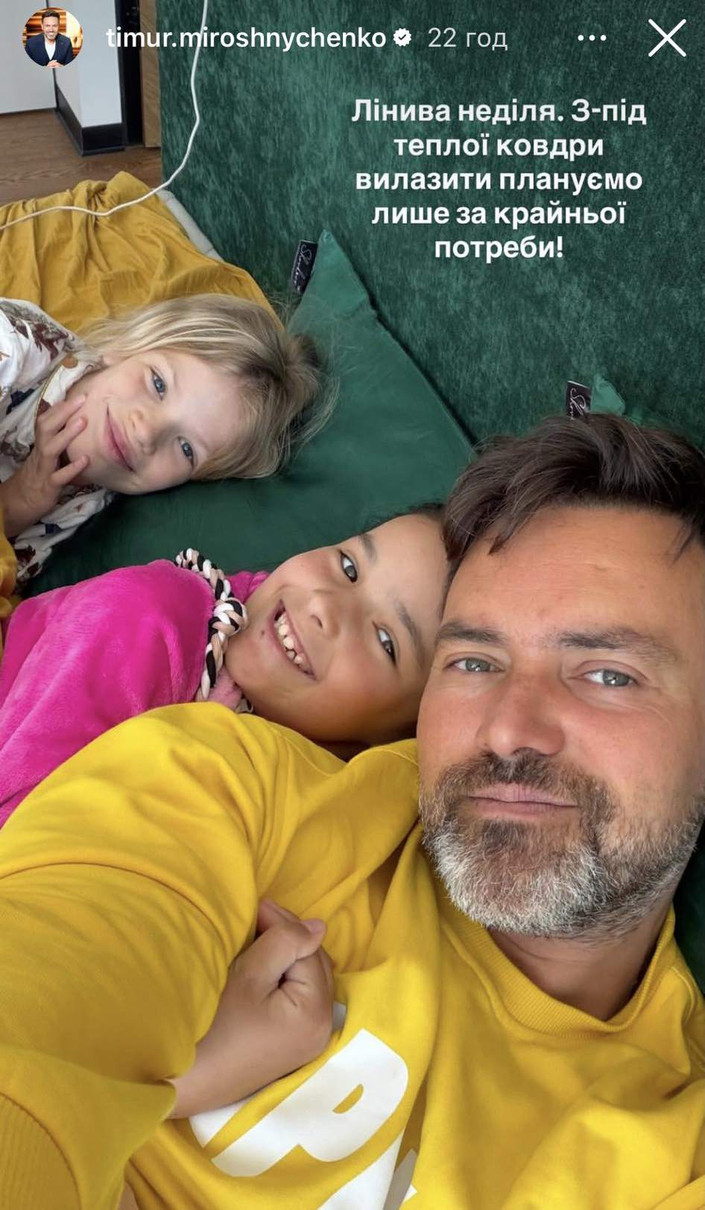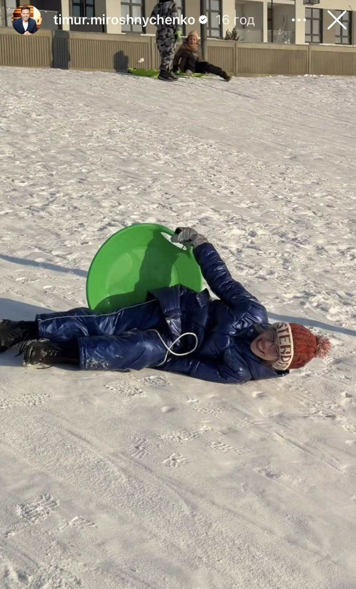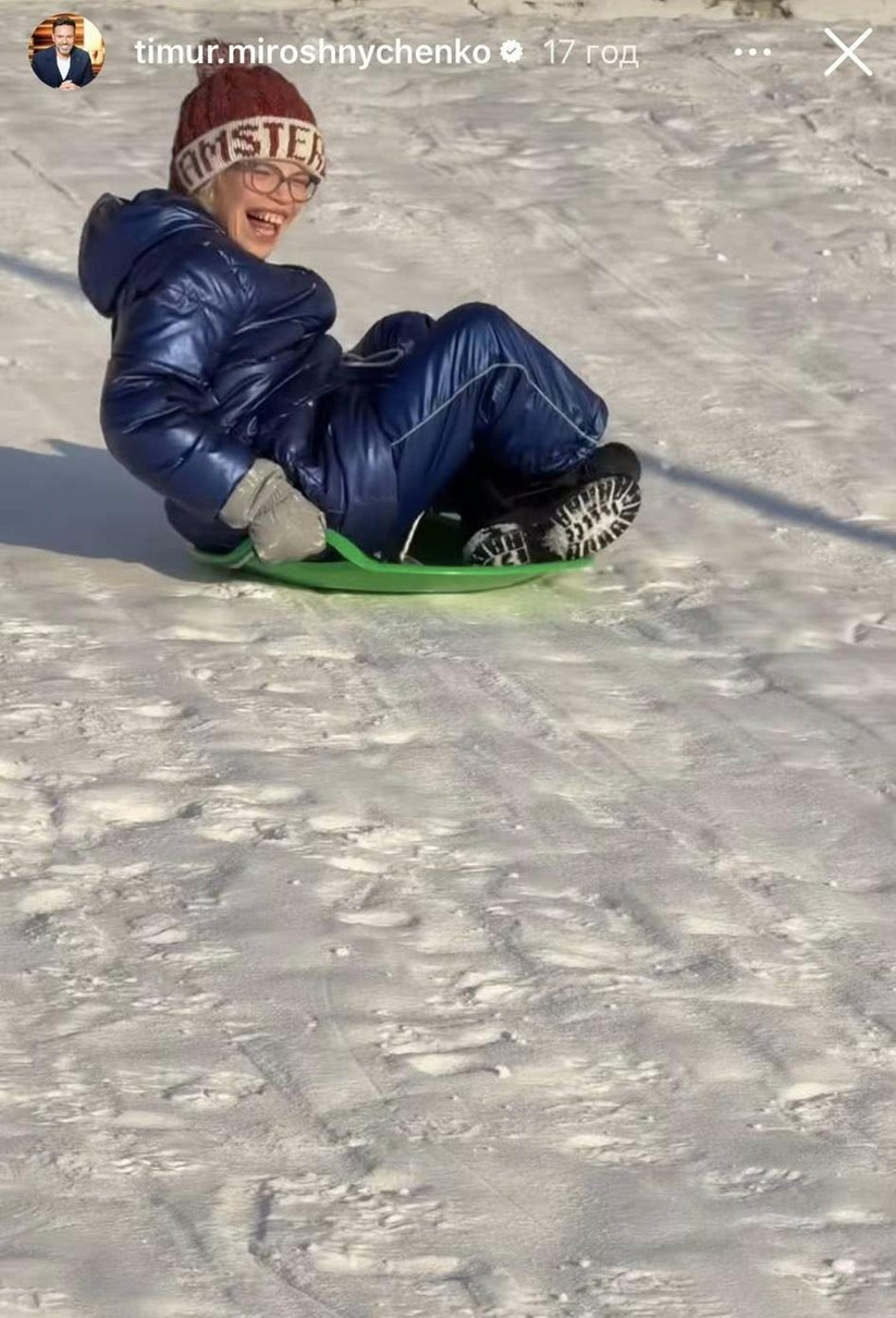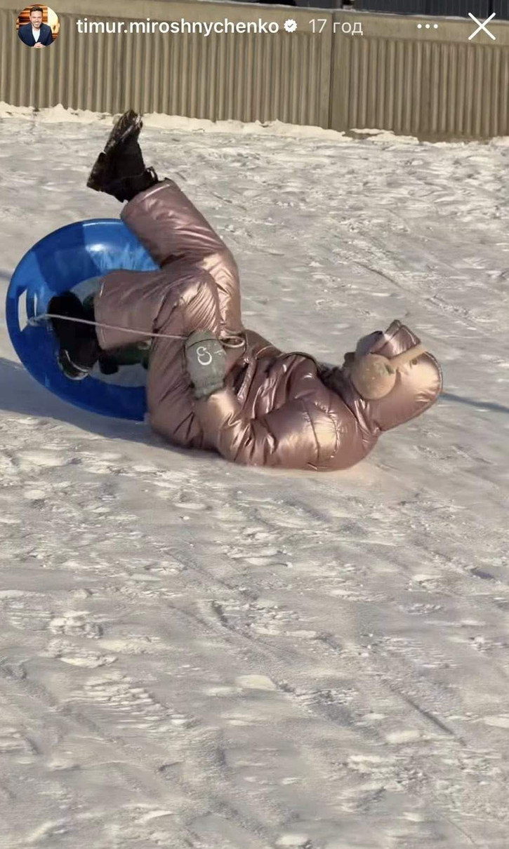 Телеведучий та багатодітний татусь Тімур Мірошниченко та його доньки, 10-річна Ангеліна та 7-річна Мія не січневого злякалися морозу. 18-го січня, в неділю вони запланували було лінивий день, "вилазити з-під ковдри лише за крайньої потреби", але потім передумали і гайнули кататися на санчатах.