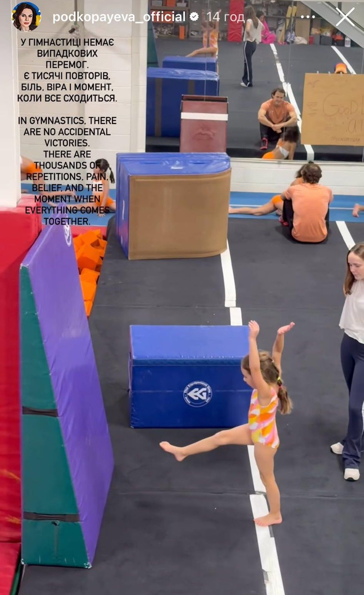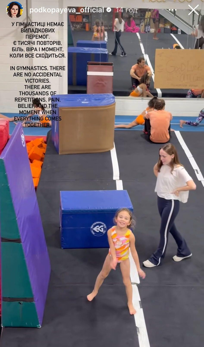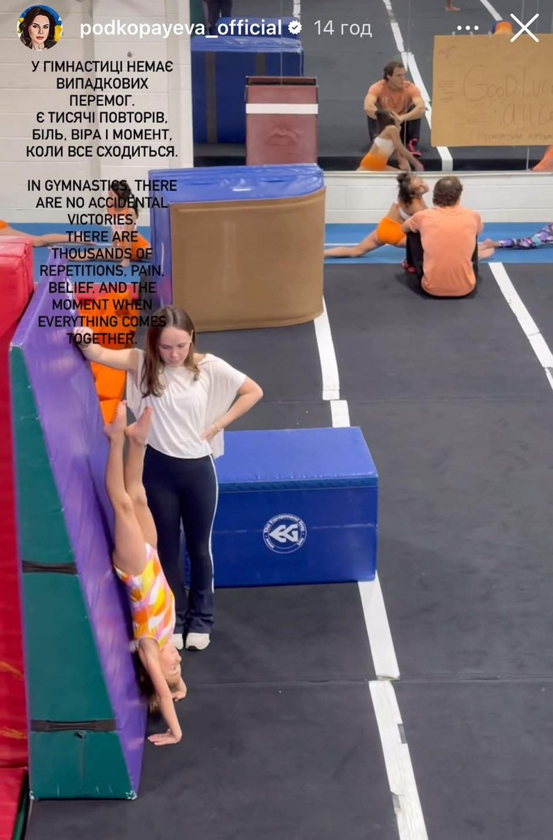 "У гімнастиці не буває випадкових перемог. Є тисячі повторів, біль, віра і момент, коли все сходиться", - написала Подкопаєва, спостерігаючи за дочкою.