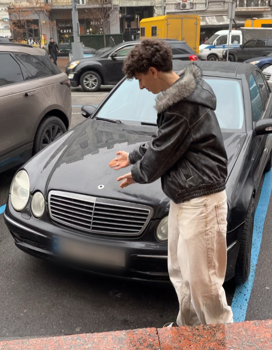 Співак Муаяд (Муаяд Абдельрахім) повідомив про інцидент, що стався з ним у центрі Києва. Невідома особа умисно пошкодила його автомобіль Mercedes, який кілька годин стояв на парковці. З машини зірвали фірмові емблеми спереду та ззаду.