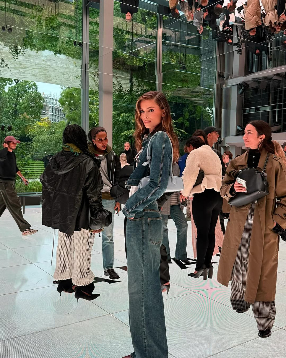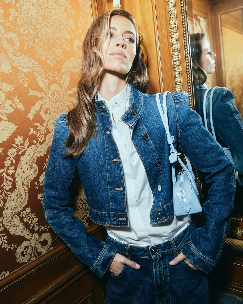 На захід 24-річна дівчина прийшла в синіх джинсах, укороченому жакеті з деніму в тон та білій сорочці від цього ж дизайнера. А доповнила образ вона блакитною сумочкою.