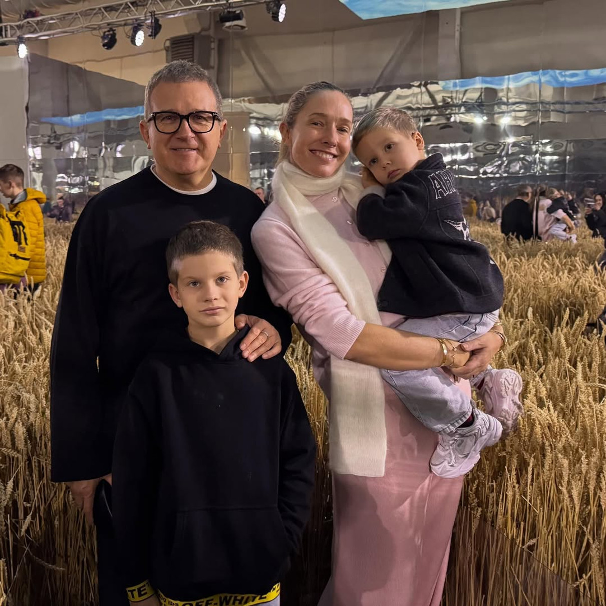 Разом зі своїм чоловіком, Юрієм Горбуновим та двома їхніми синами, 3,5-річним Данилом і 8-річним Іваном Катя відвідала виставку українського мистецтва