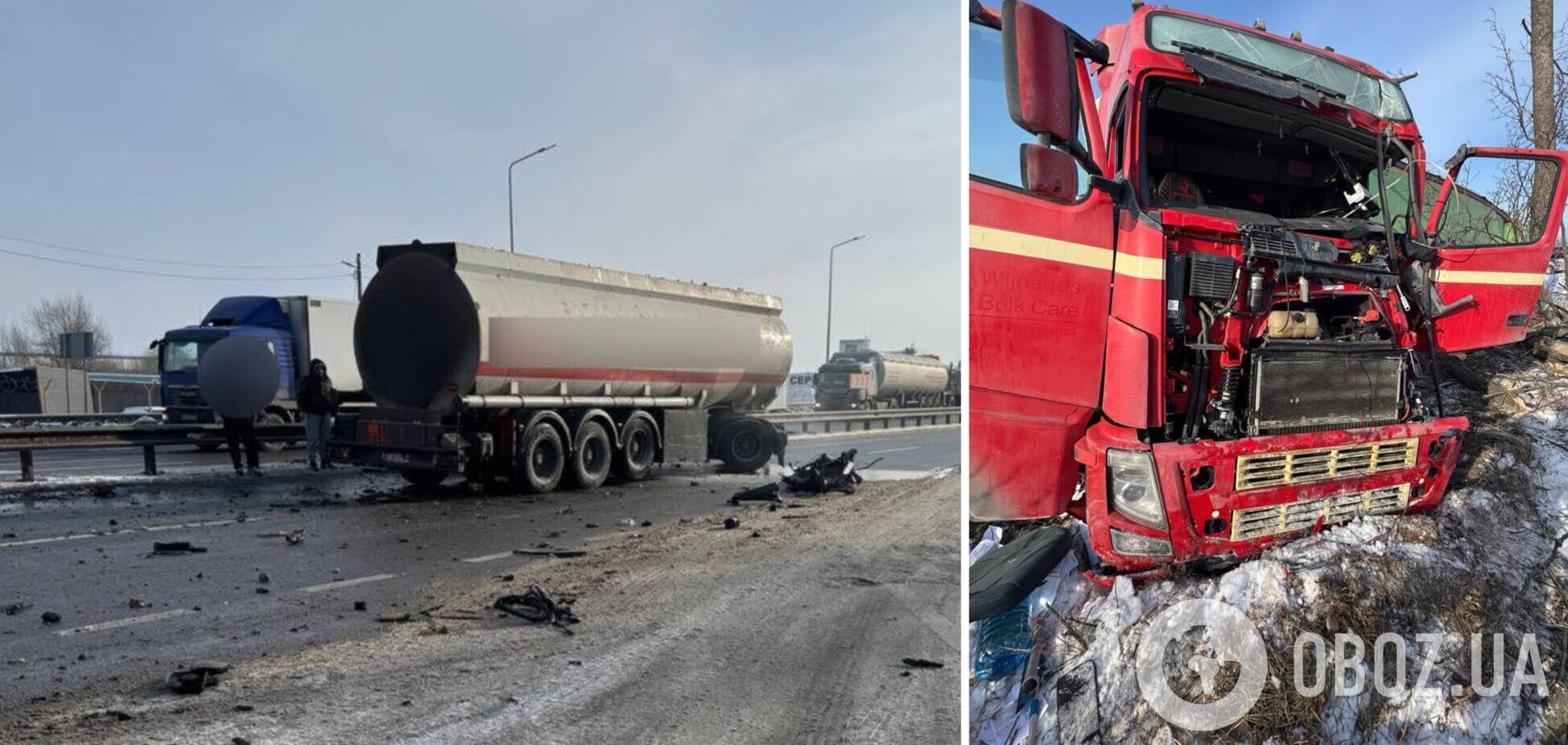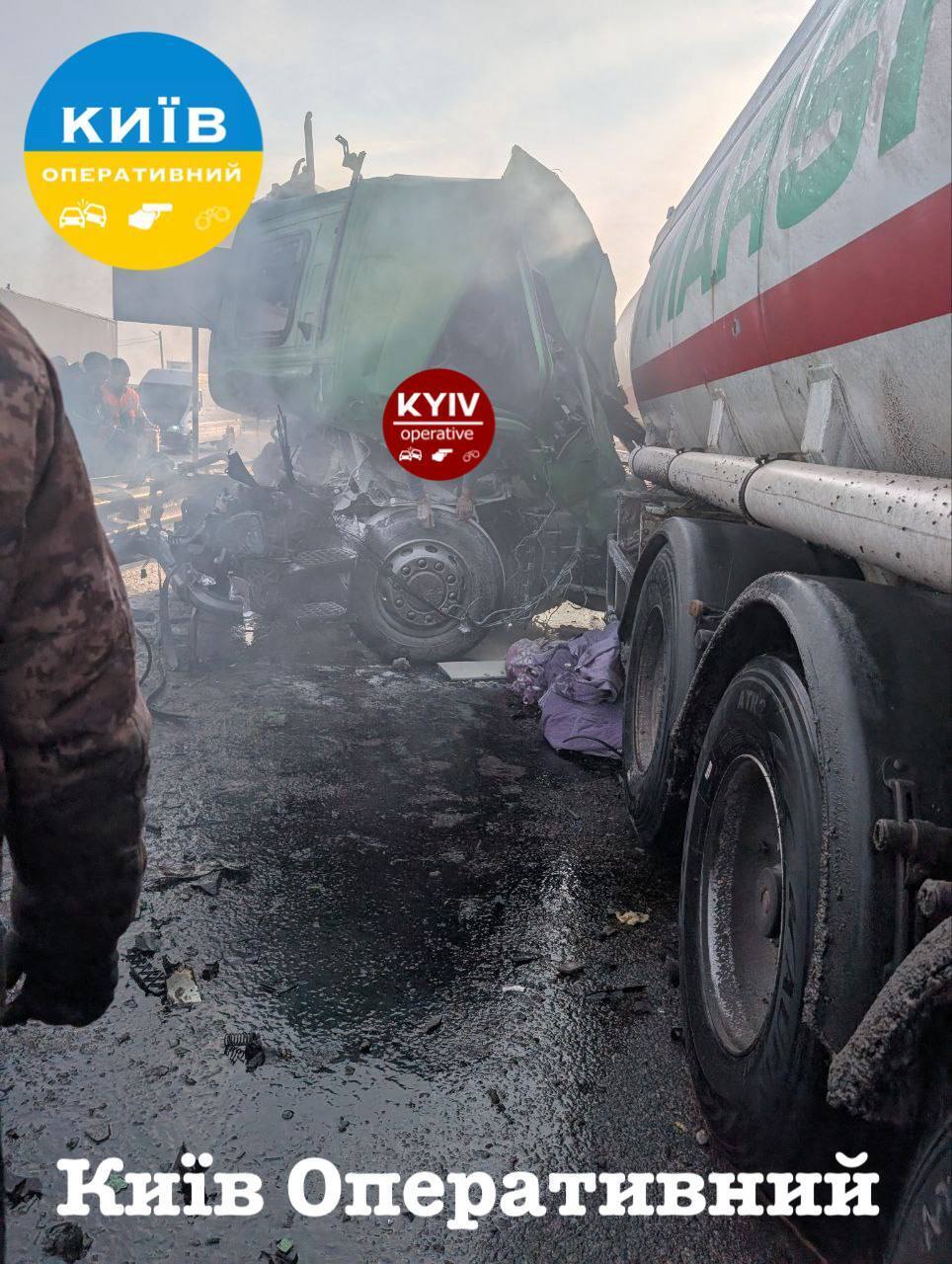 У Броварському районі Києва, поблизу села Калинівка, сталась ДТП за участі кількох вантажних авто. На жаль, внаслідок зіткнення водій однієї з машин загинув.