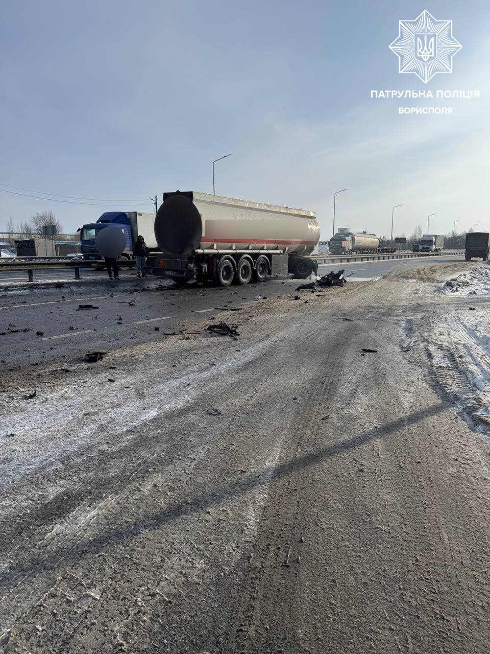 Згодом у патрульній поліції Борисполя уточнили, що зіткнення за участі кількох вантажівок відбулось на 35 км автодороги М-01 "Київ – Чернігів". Рух в напрямку міста Києва частково перекритий.