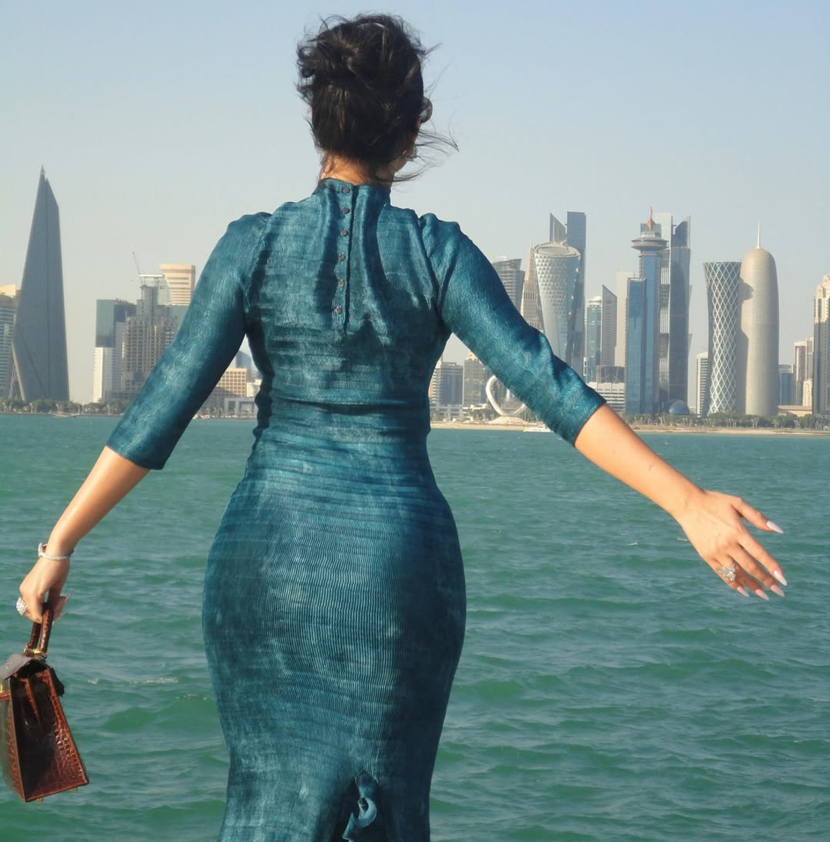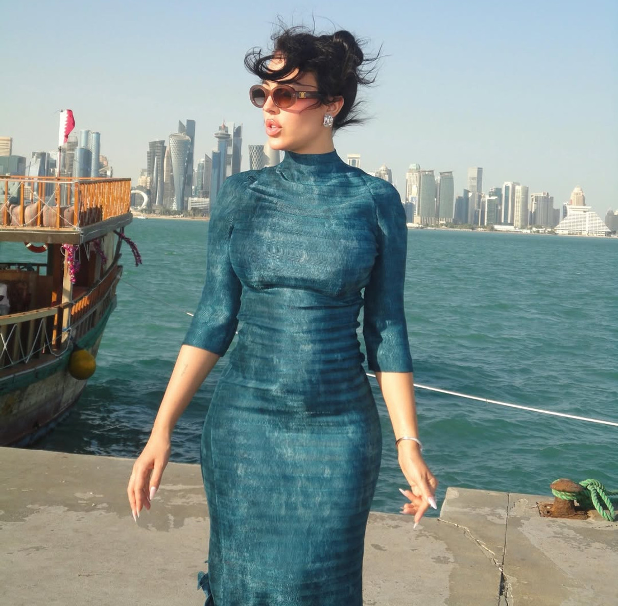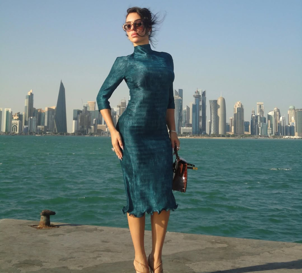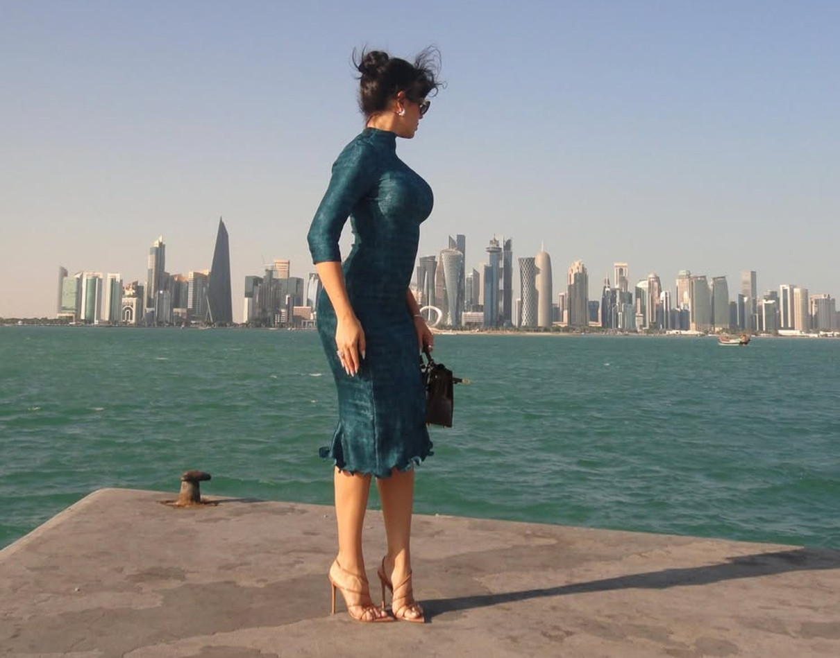 Модель блиснула звабними формами на тлі краєвиду міста Доха