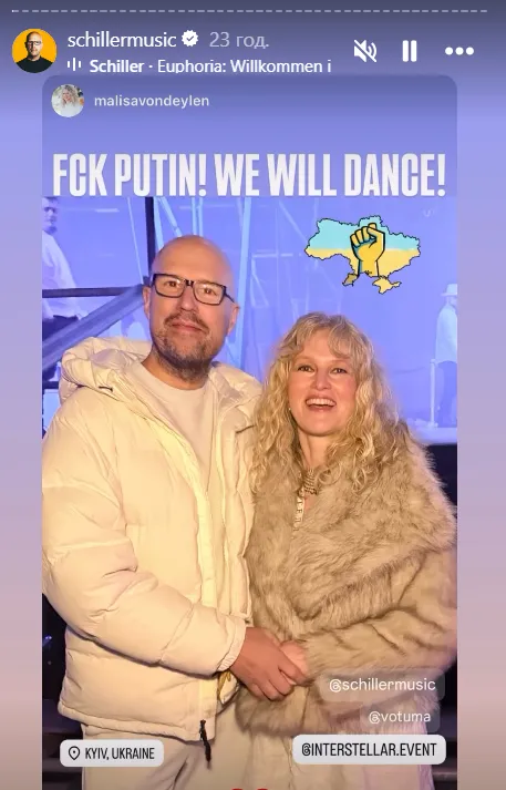 Про приїзд артистів і їхню реакцію на події в місті розповіла співачка Jerry Heil у своєму Telegram-каналі. За її словами, команда Schiller прибула до Києва, застала ніч із повітряними тривогами та обстрілами, але все одно провела запланований концерт і не стала одразу залишати країну.