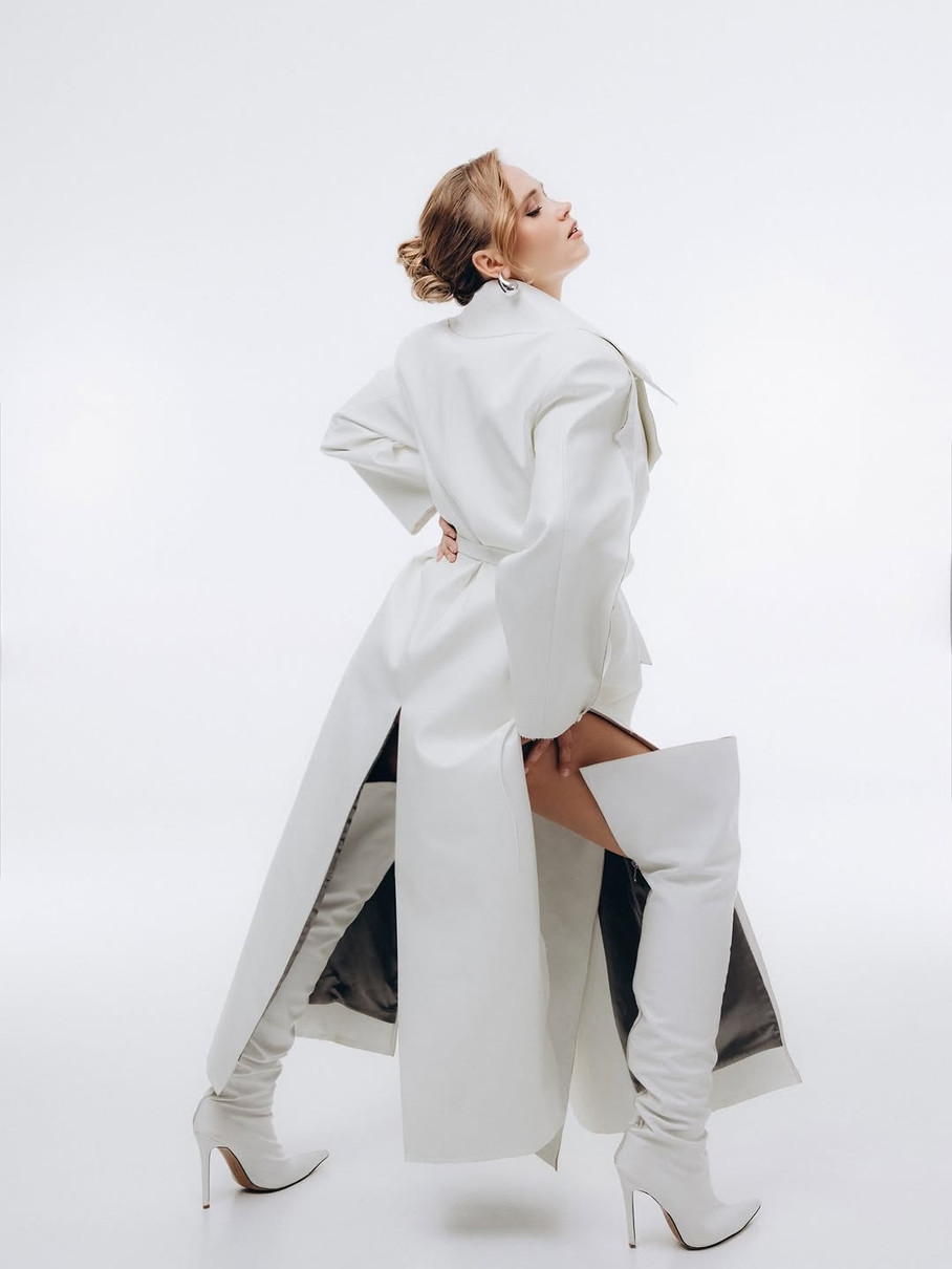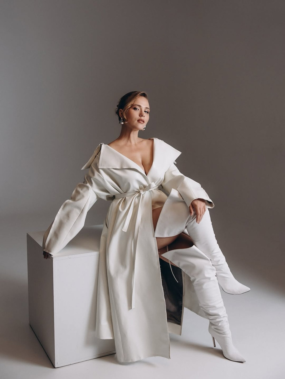 30-річна Аня вбралася в високі білі чоботи і білий тренч, створивши ілюзію (або ні), що під ним лише оголене тіло.