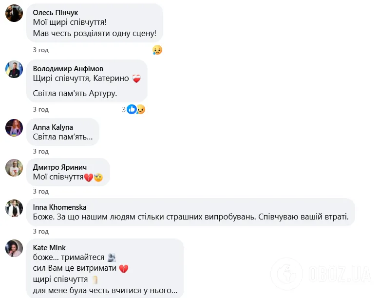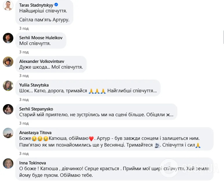 "Боже, Катю. Я запам’ятала Артура смішним і нещодавно показувала його записи друзям. І вони теж пам’ятатимуть. Мені так шкода".
