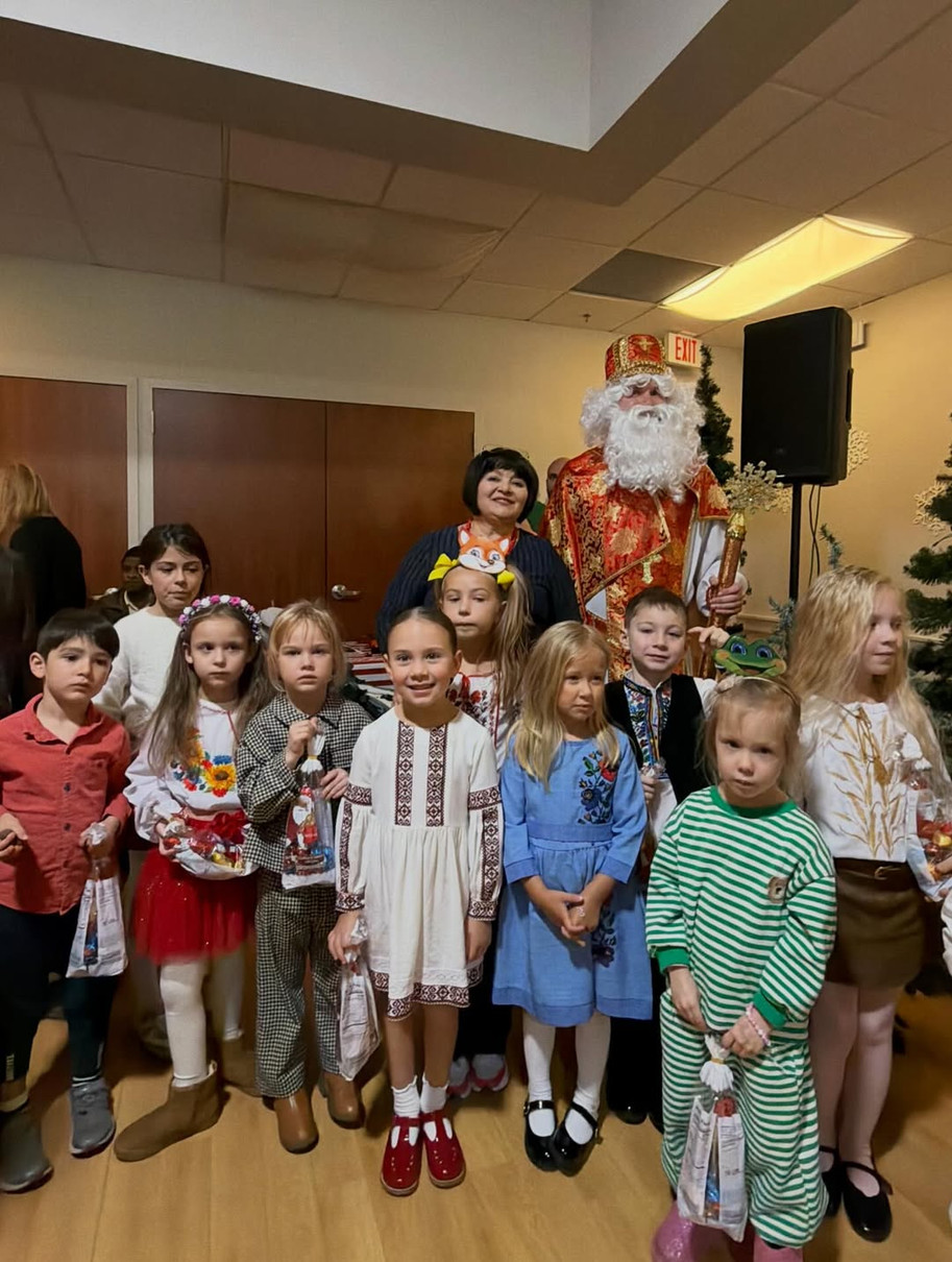Гімнастка Лілія Подкопаєва похвалилася своєю 6-річною донечкою Евеліною на святковому різдвяному ранку в Українській школі Атланти.