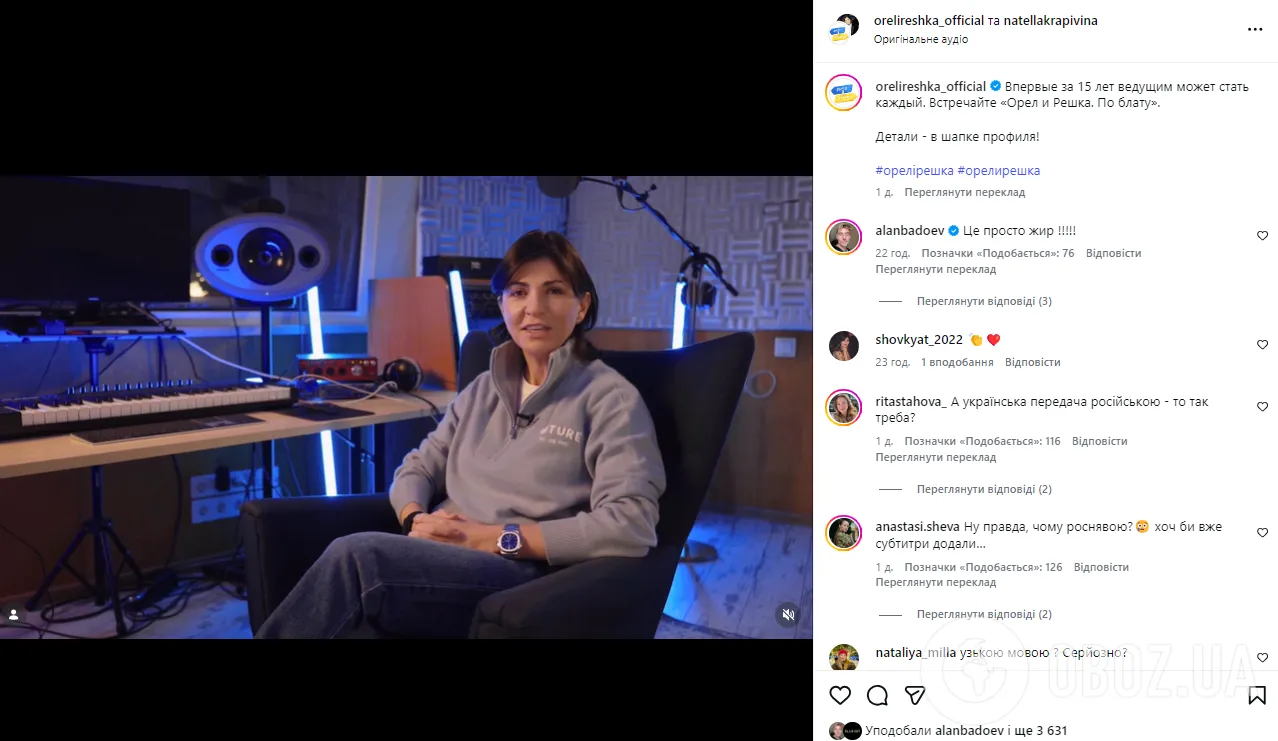 "Дуже багато вони заявляли, що "Орел і Решка" – це український продукт. У профілі зазначено: Stop war in Ukraine. І в мене запитання: коли запуститься новий сезон, якою мовою він буде?" – сказав Фешак.