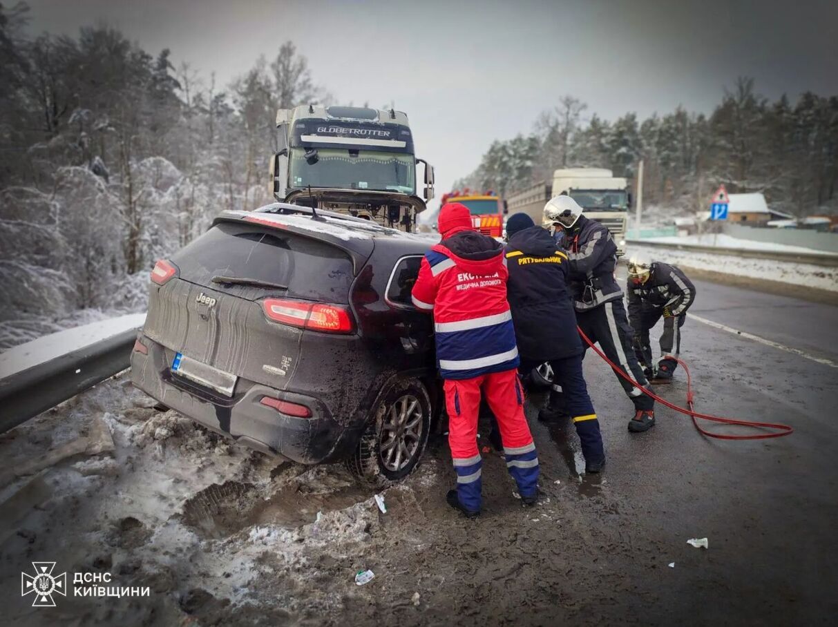 У Бучанському районі Київської області 26 січня сталась аварія за участі вантажівки та легковика. Внаслідок зіткнення постраждав пасажир останнього авто.