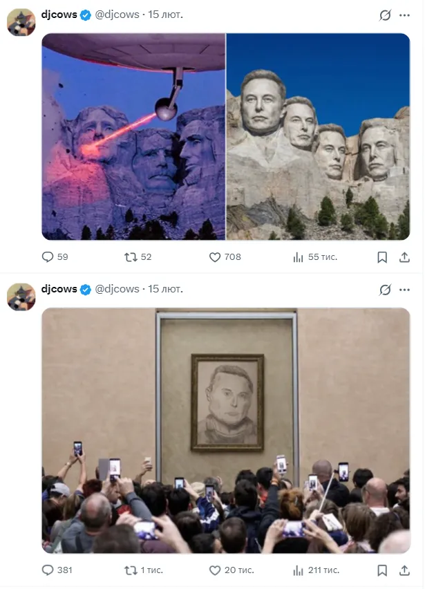 Історію підхопили інші користувачі X на його сторінці: вони почали публікувати власні версії "портрета", фотожаби та жарти про реакцію мільярдера. Дехто підтримав художника, інші ж вказували, що власник платформи має право блокувати будь-які акаунти.