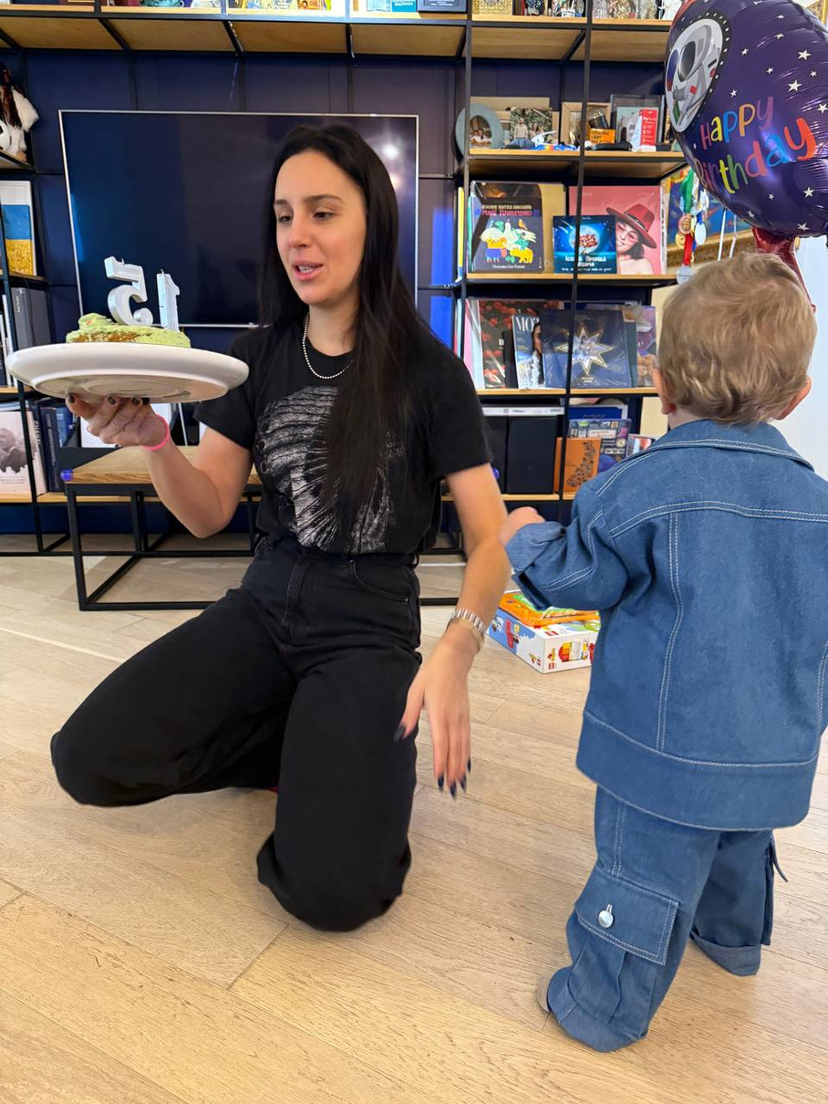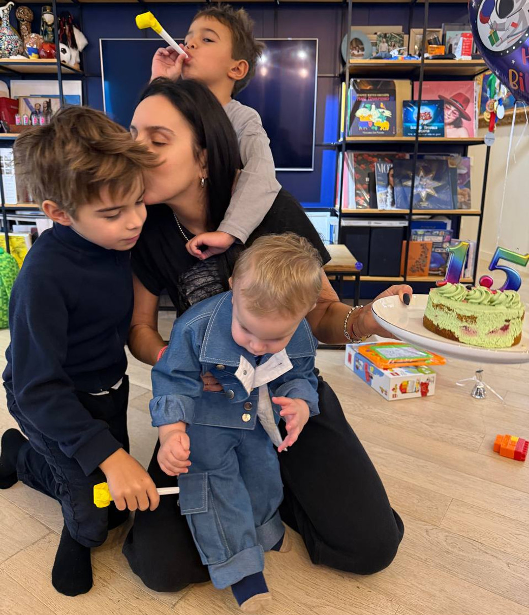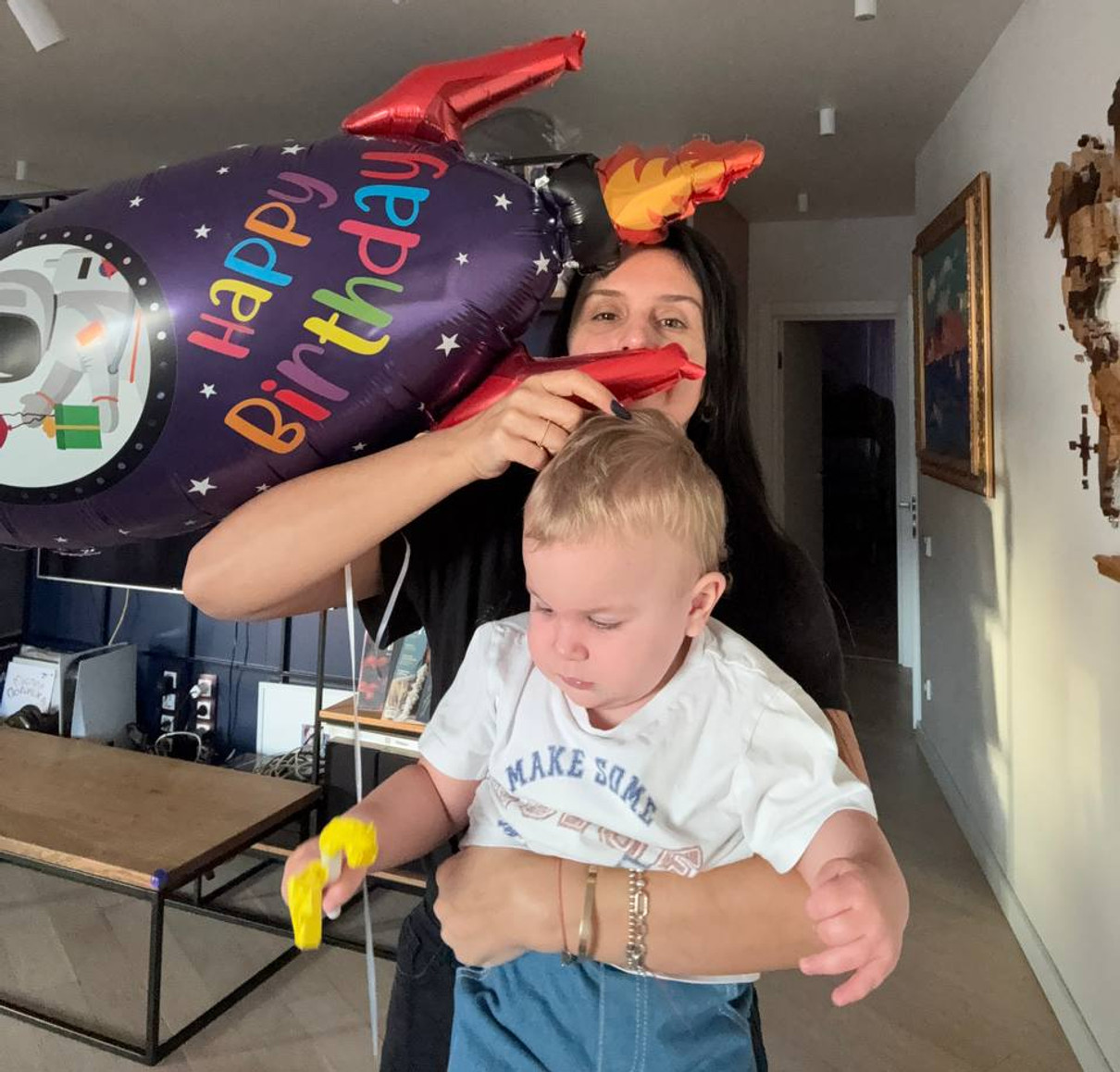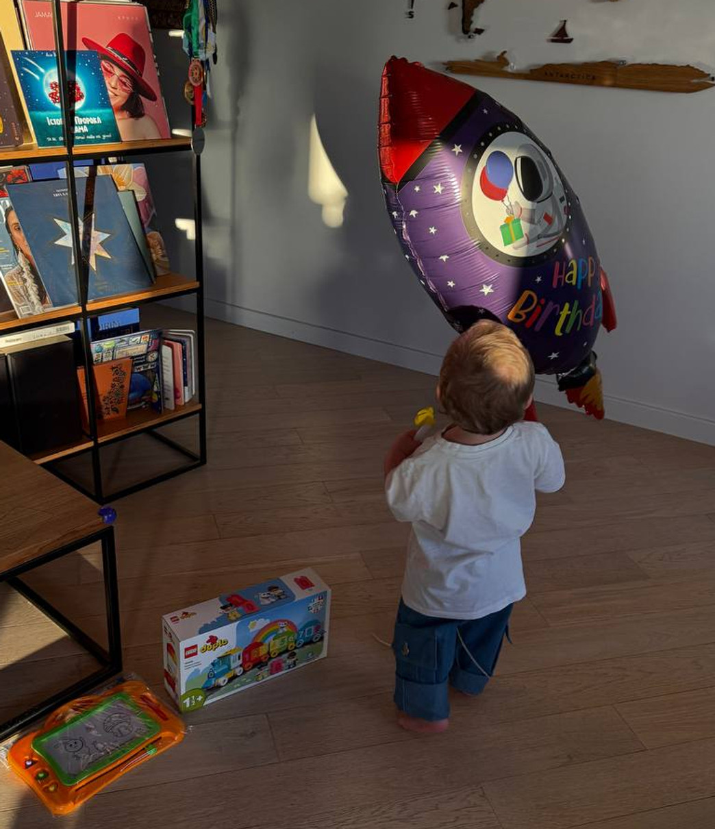 У святковий день зіркова матуся підготувала справжню домашню вечірку для хлопчика та вручила йому кульку у вигляді ракети й традиційний тортик.