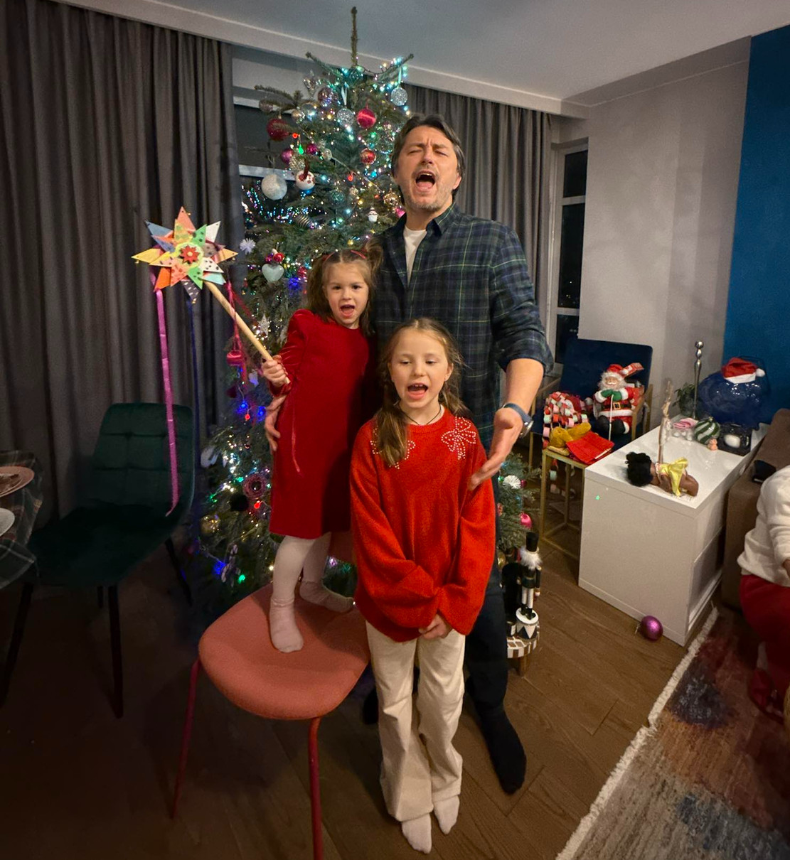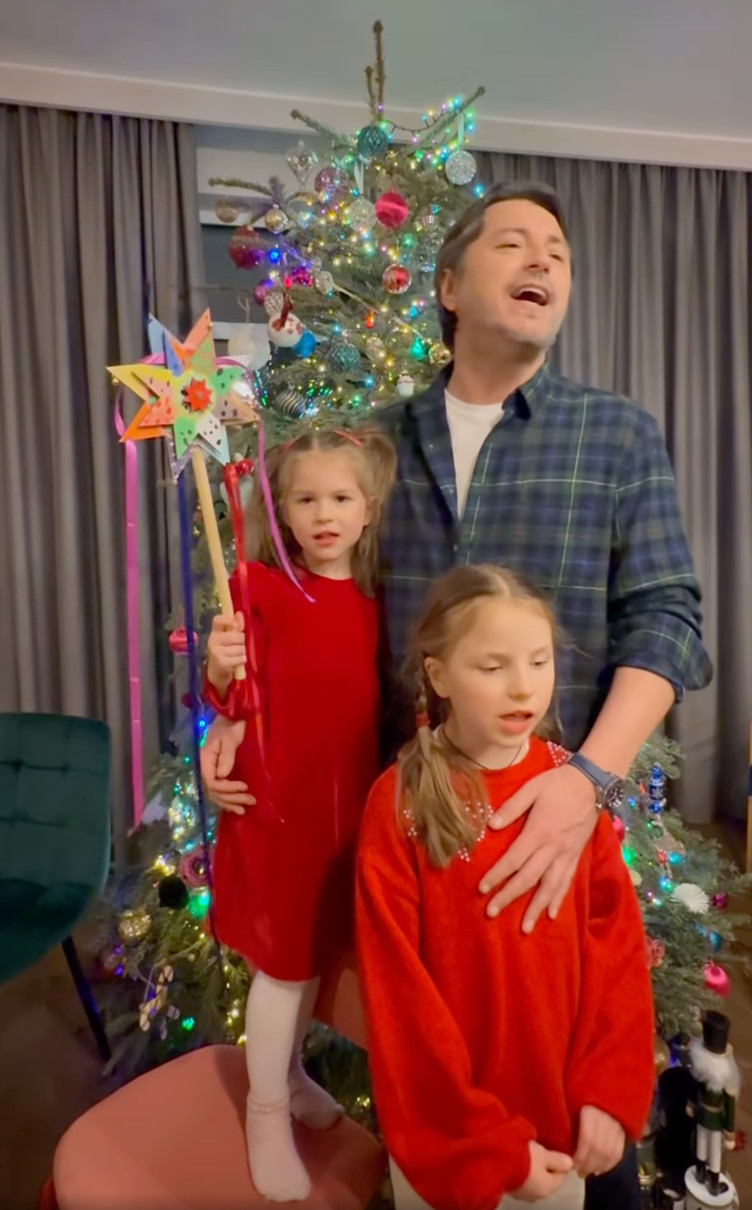 На своїй сторінці в Facebook знаменитість опублікував миле відео, на якому разом зі своїми дочками, 8-річною Соломією і 4-річною Стефанією виконали святкову колядку на тлі ялинки.