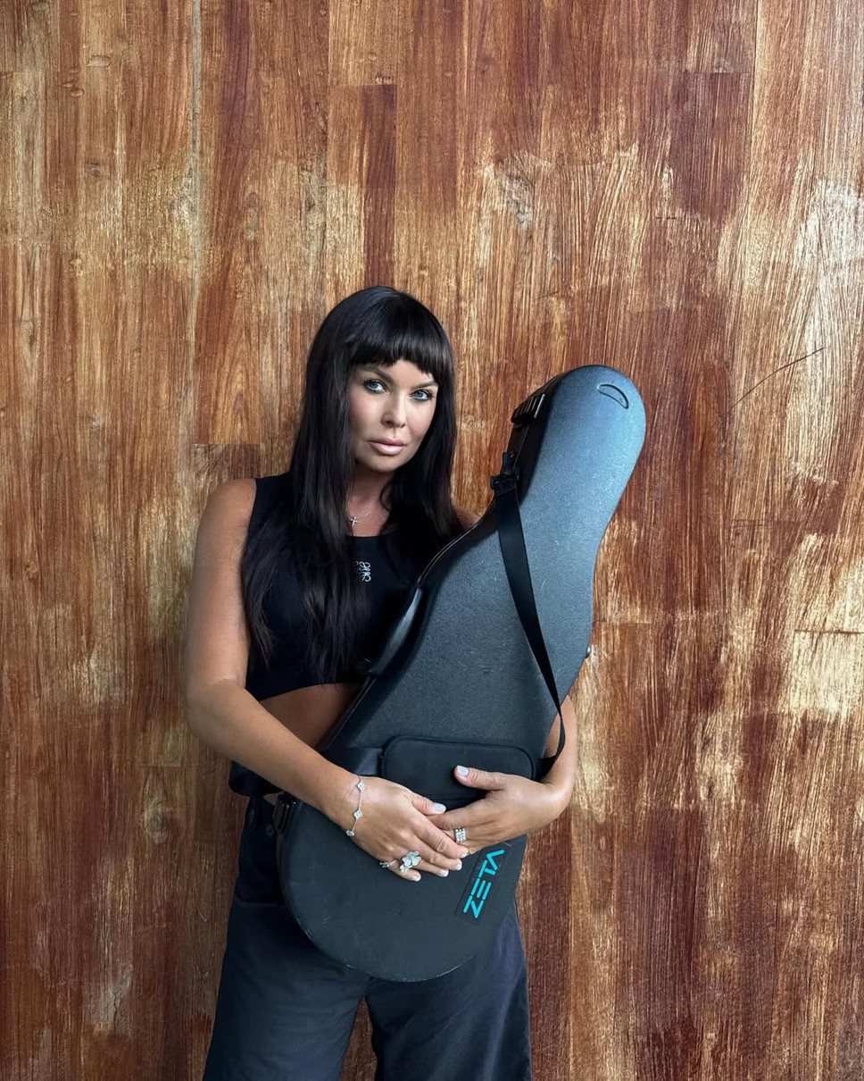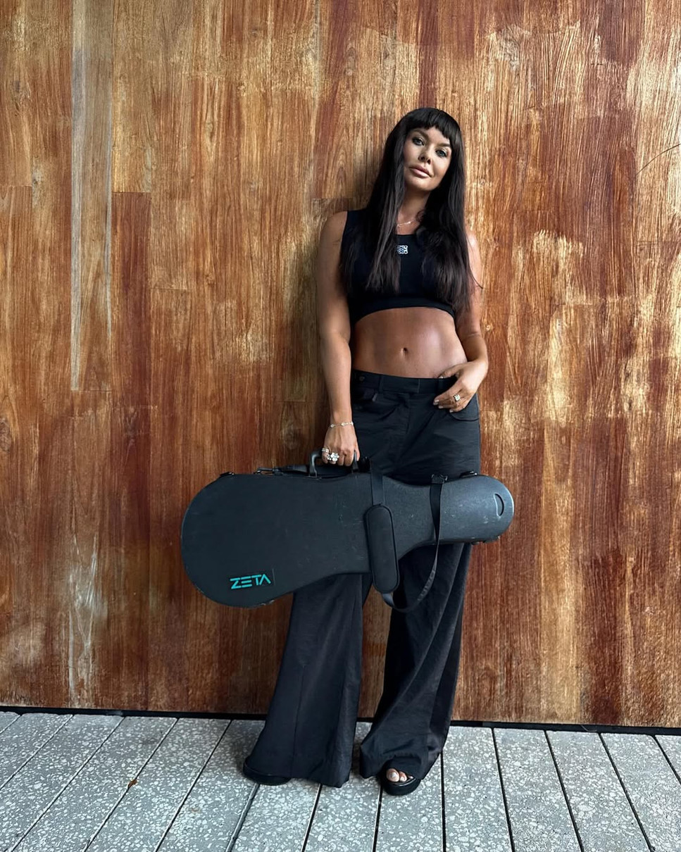 На нових світлинах Ассія позує у простому луці - чорних широких штанях і чорному короткому топі. В руках вона тримає свою вірну подругу- скрипку у чохлі.