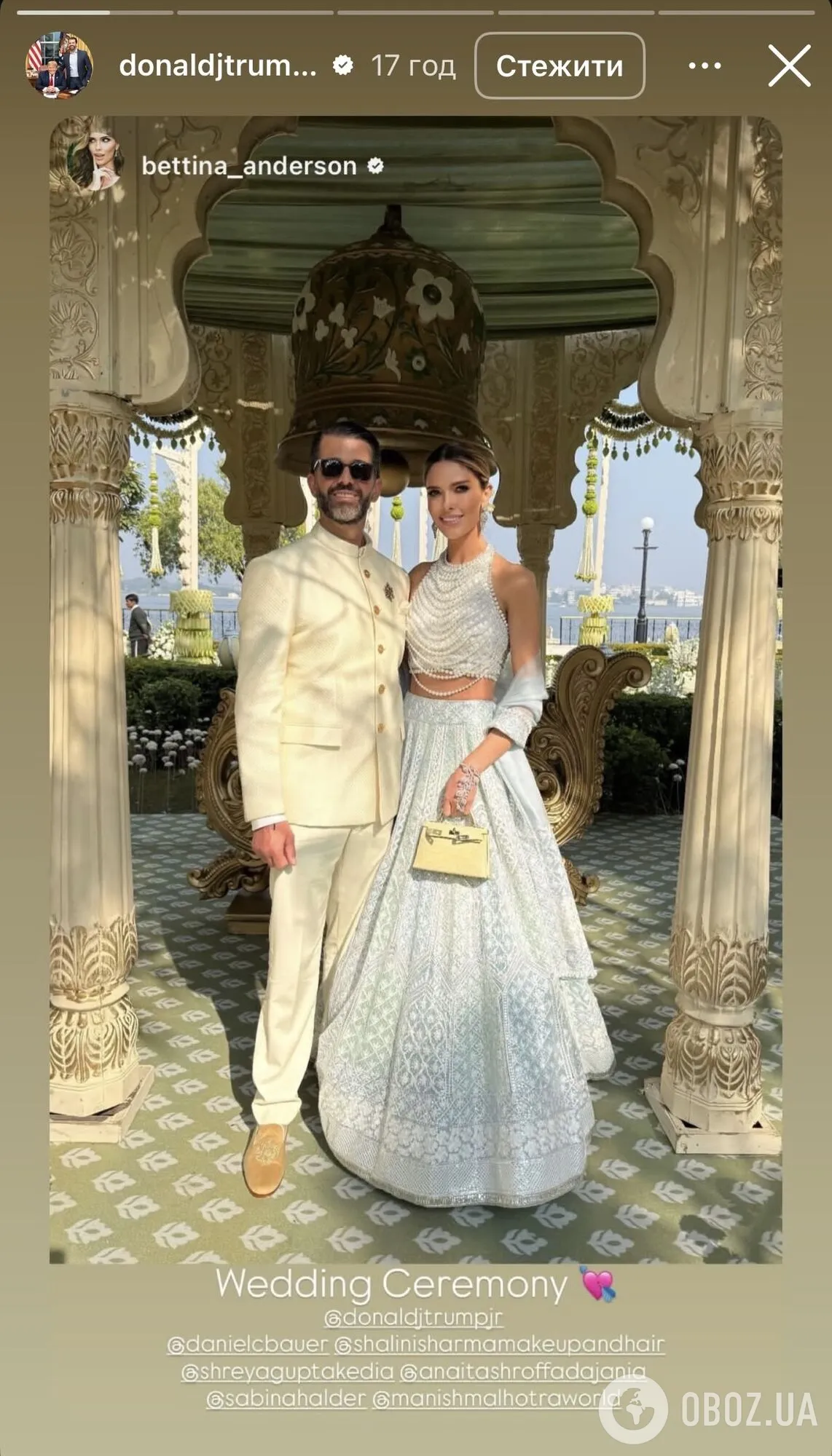 Серед гостей на весіллі Нетри Мантени та Вамсі Гадіраджу було багато зірок та впливових людей, зокрема, син 47-го президента США – Дональд Трамп-молодший і його дівчина Беттіна Андерсон.