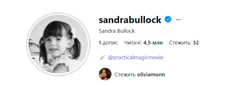 Буллок тривалий час утримувалася від створення особистого акаунта, попри популярність платформи серед її колег. Утім, у 2026 році вона все ж вирішила приєднатися до Instagram і одразу привернула до себе значну увагу аудиторії та обзавелася підтримкою друзів.