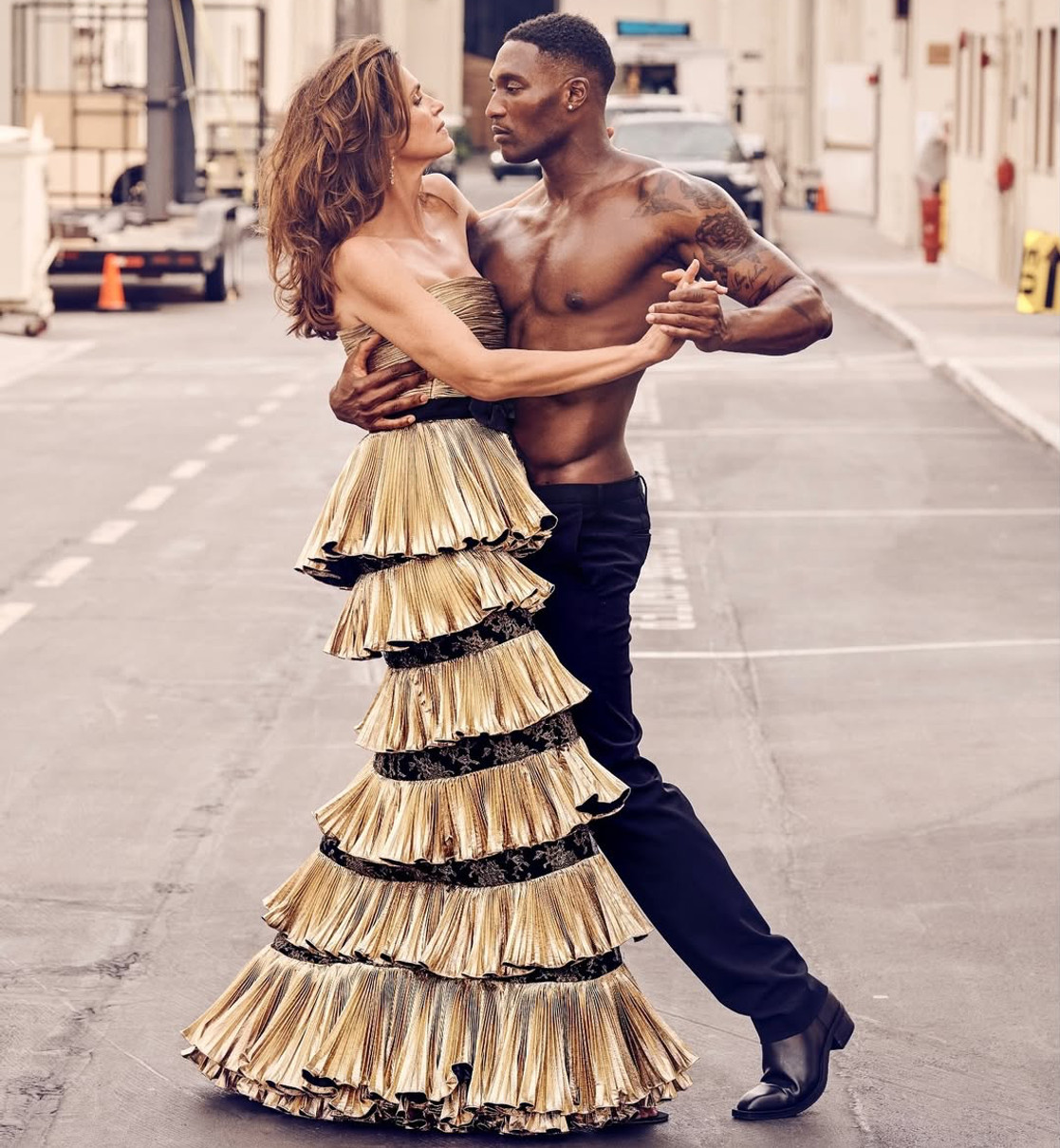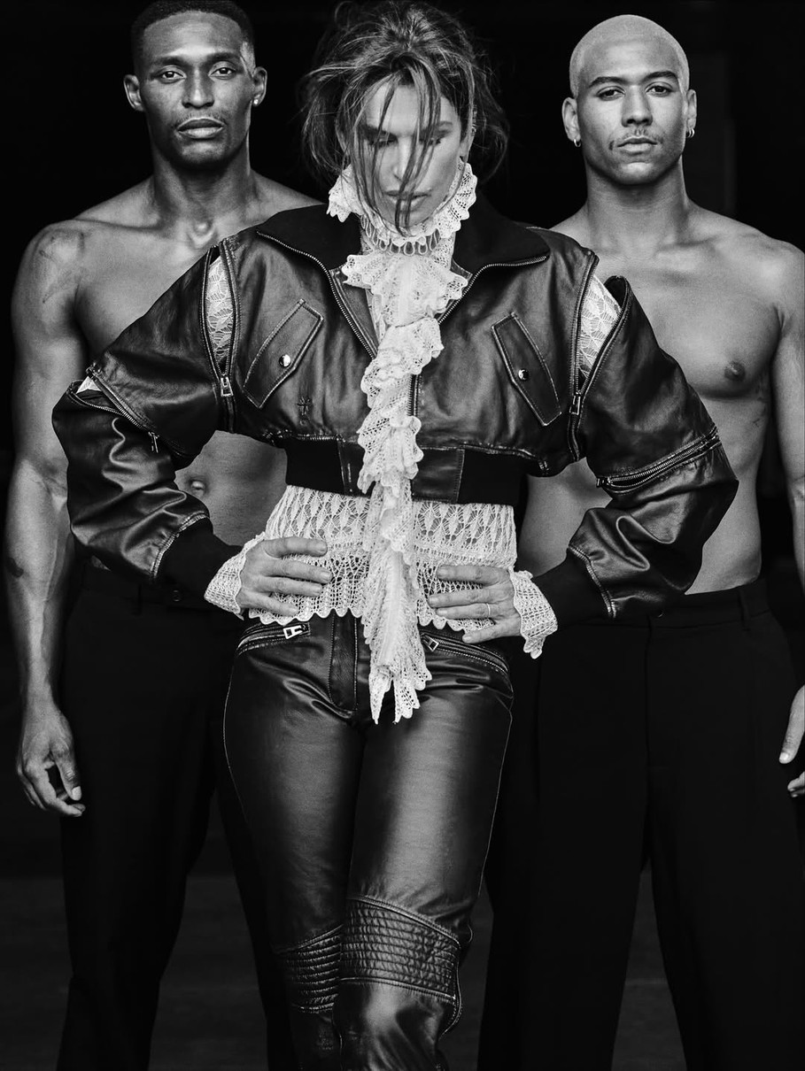 У фотосесії знаменитість передала атмосферу Голлівуду, поки грайливо позувала з голоторсими молодиками. Для ефектних кадрів Сінді змінила декілька образів, серед яких спокусливі сукні, шкіряні комплекти та декольтований жакет.