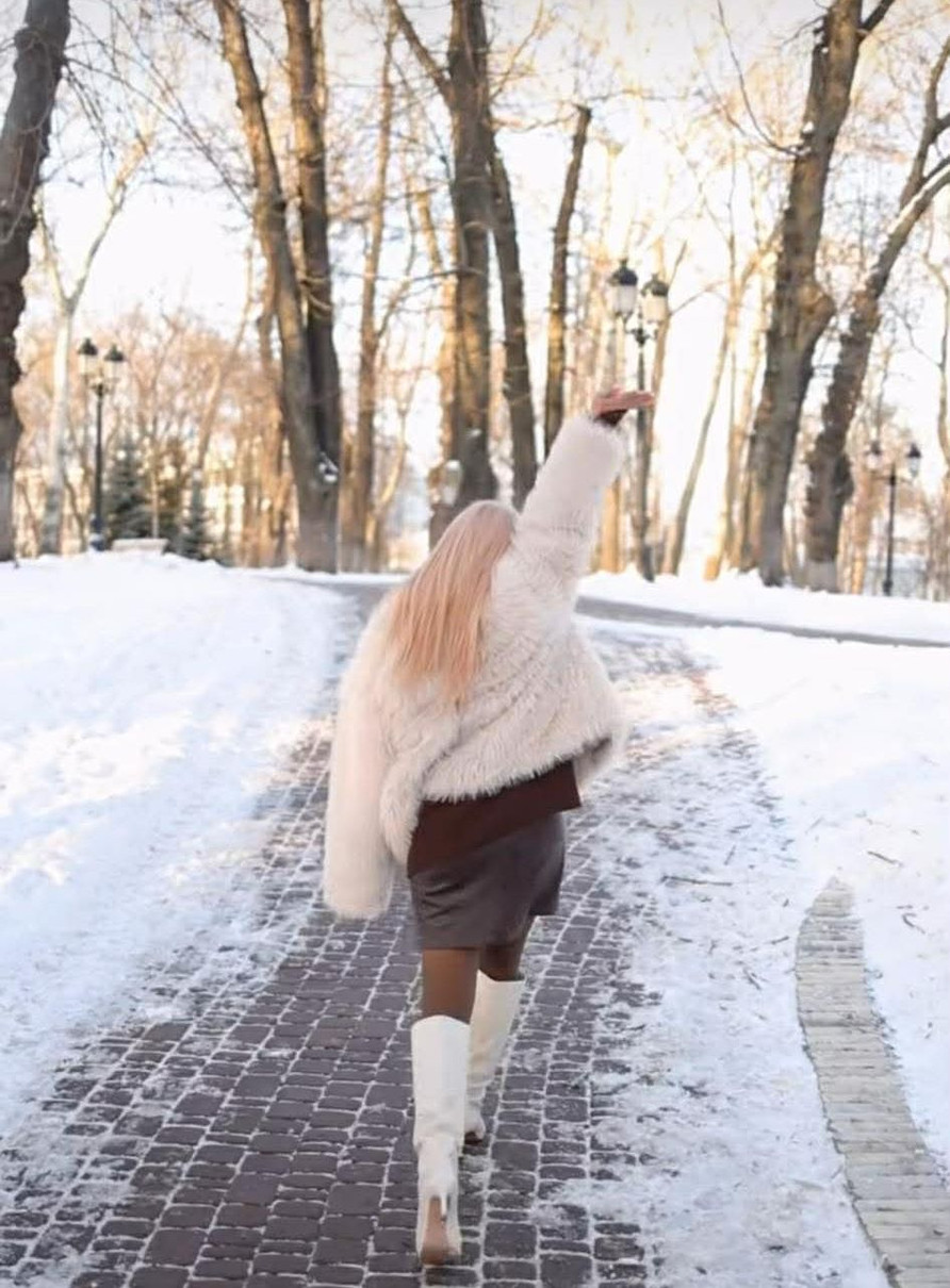 Тож Лілія вирішила продемонструвати свій настрій вайбовим відео, на якому у молочній шубці, мініспідниці та молочних високих чоботах покрутилася перед камерою у парку.