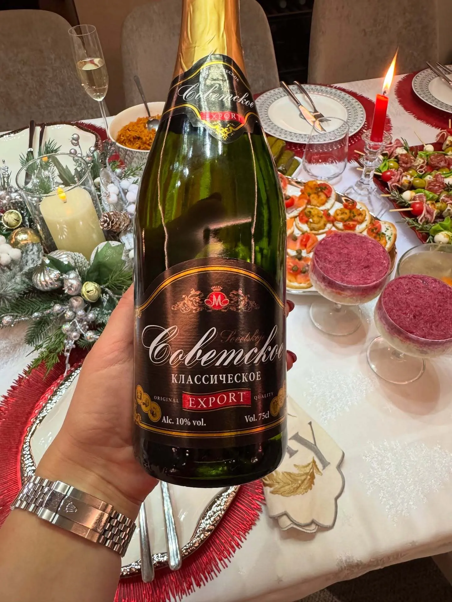 Новий рік-2026 артистка зустрічала в сімейному колі – разом із чоловіком і донькою. На святковому столі, який вона показала підписникам, було, зокрема, російське шампанське "Советское классическое", а також традиційні страви на кшталт "олів’є" та "шуби" (хоча в Україні вони також досить популярні).
