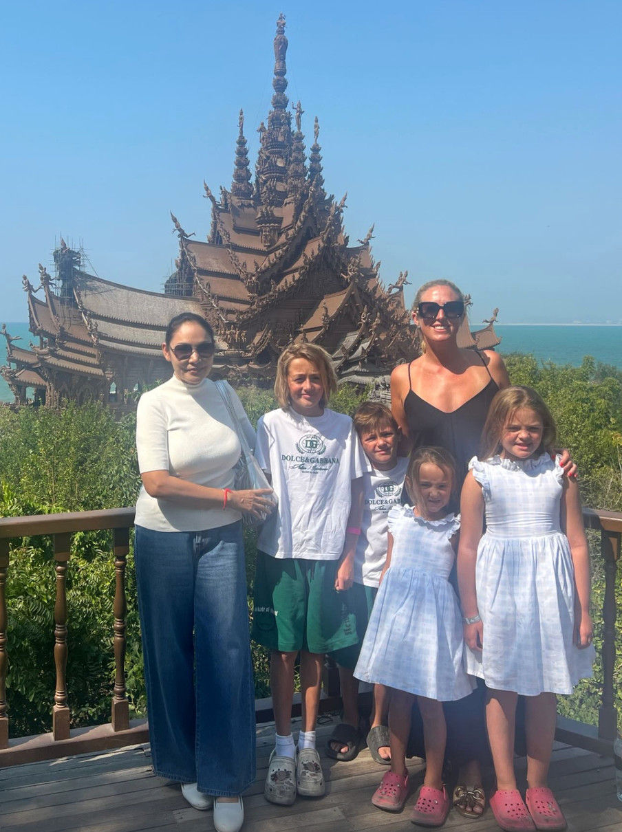 Пара разом із сімома дітьми поїхала відпочивати до Таїланду. Спортсмен не забуває про романтику у своєму шлюбі, а тому пригорнув кохану на тлі океану.