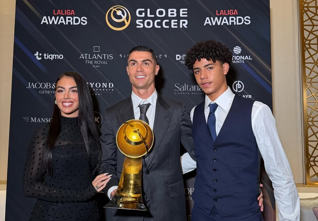 Спортсмена, який, до речі, отримав цю відзнаку третій рік поспіль, прийшли підтримати наречена, Джорджина Родрідес та старший син, Кріштіанінью.
