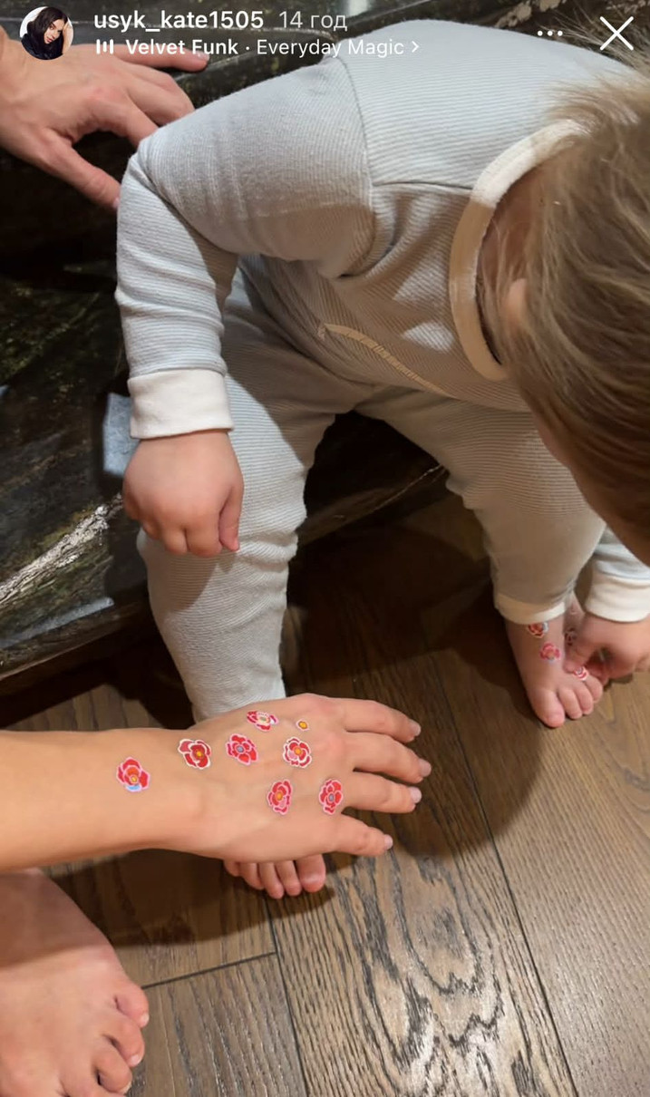 Багатодітна мама виклала в сторіс фото з дівчинкою та показала, як вона обліпила себе і її рожевими наліпками.