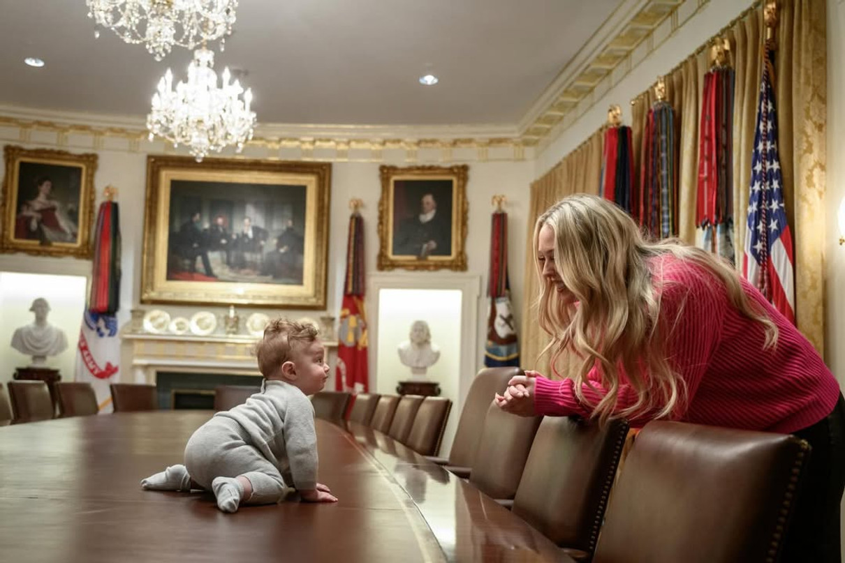 31-річна матуся зазнімкувалася коло Дональда, який з радістю розважав дитину. Також Тіффані показала, як її син повзає Овальним кабінетом.