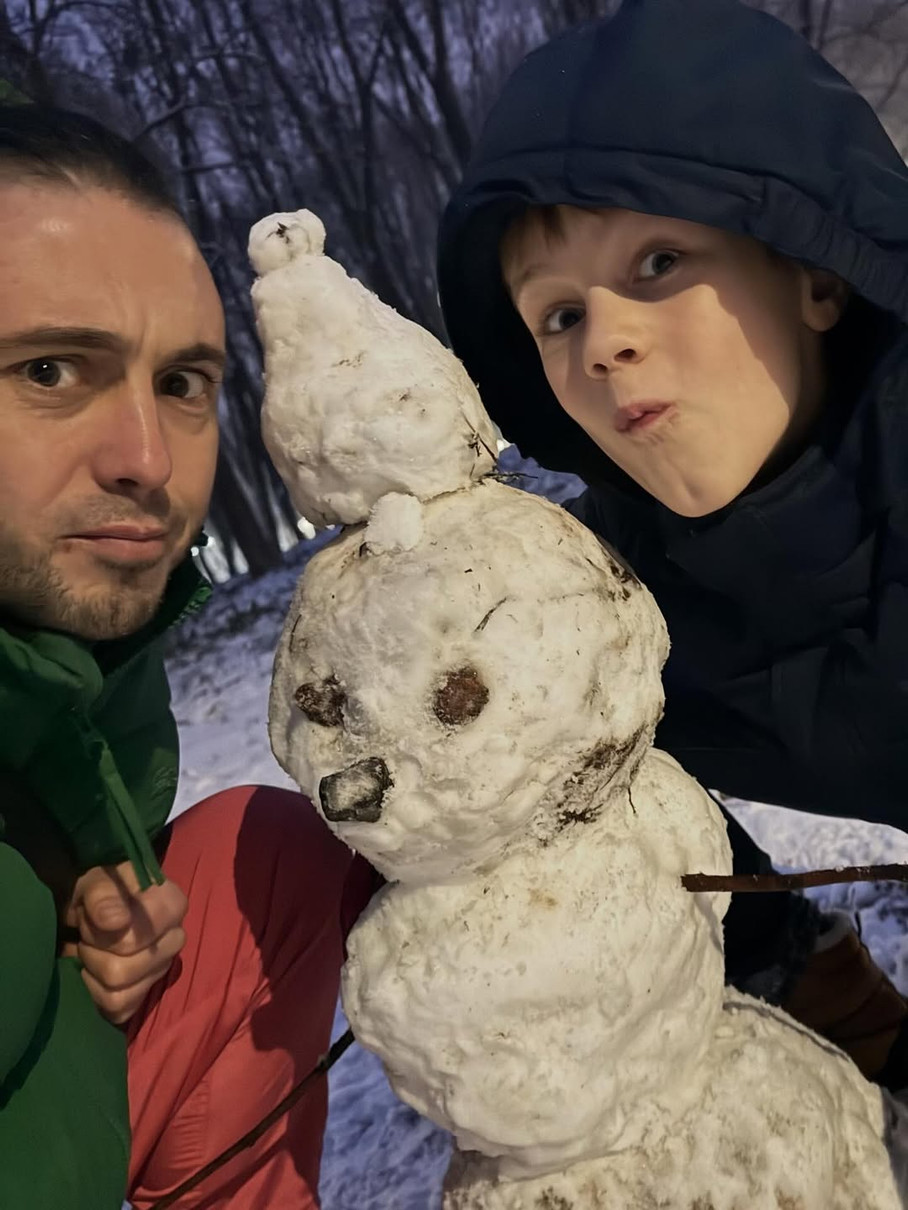 У себе в Instagram артист опублікував фото молодшим сином, 10-річним Марком, на якому вони влаштовували собі справжні зимові розваги. Зірковий тато вирішив погуляти з хлопчиком у Сирецькому парку та зліпити сніговика.
