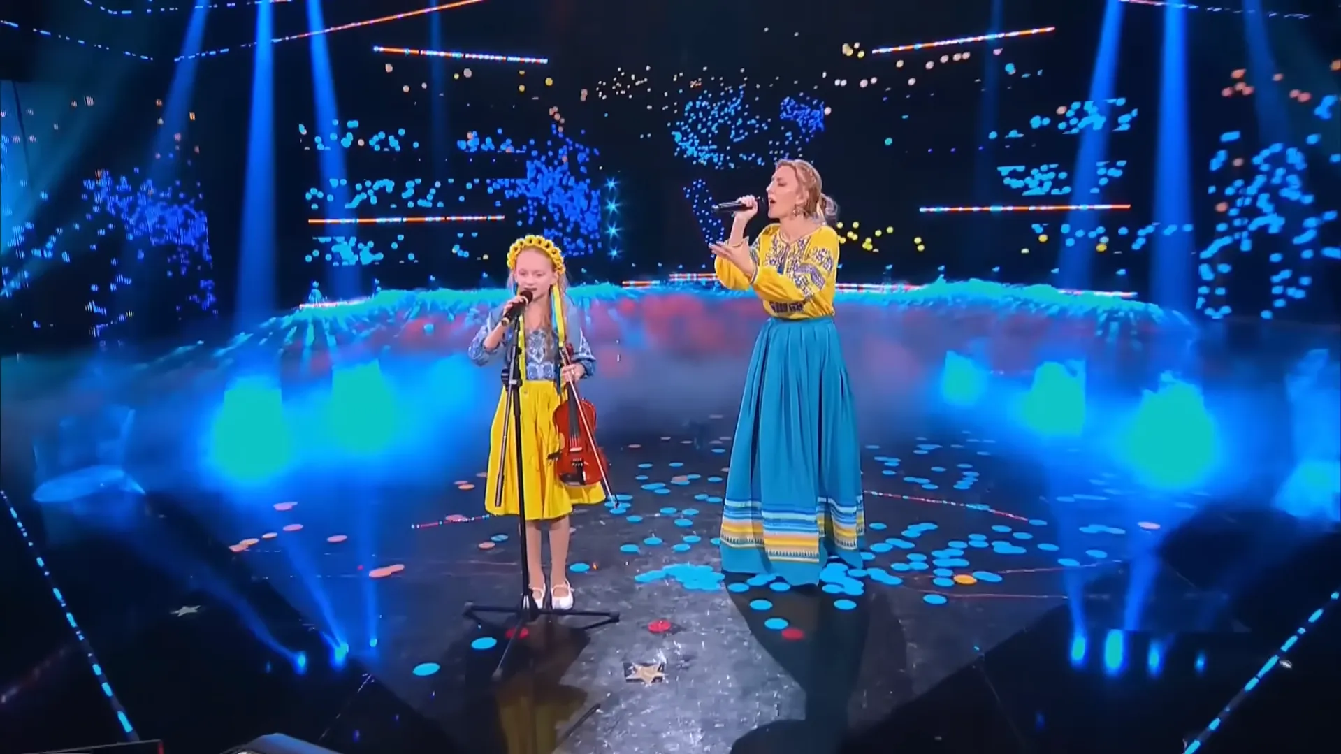 На сцені Ілларія та Соломія з’явилися у вбраннях у кольорах українського прапора. Співачка була у жовтій вишиванці з синім орнаментом та довгій блакитній спідниці. Її донька виступала у синій вишитій сорочці та жовтій спідниці, а на голові мала вінок із жовтих квітів зі стрічками.