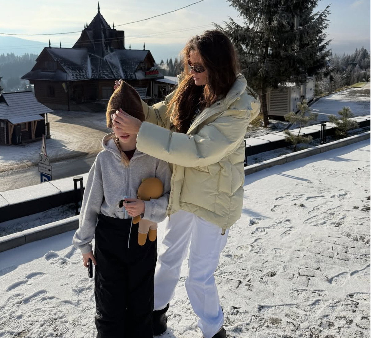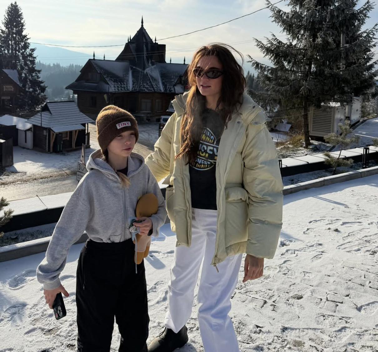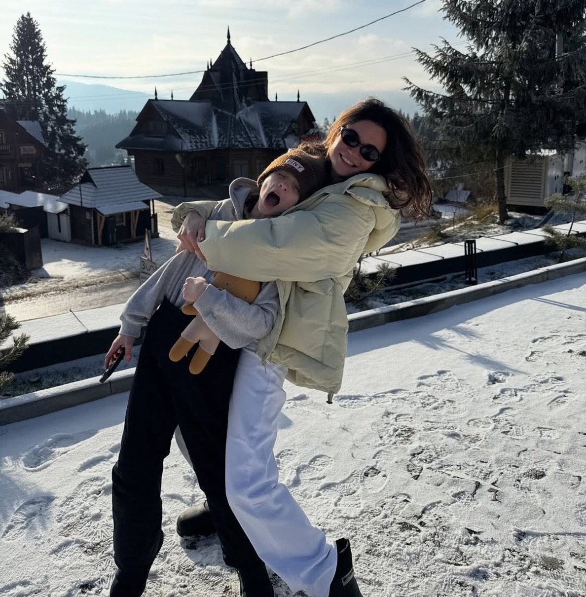 У себе в Instagram матуся опублікувала милі фото з 9-річною дочкою Сашею і 4-річним сином Іваном з села Криворівня, що на Гуцульщині. Саме сюди вони приїхали на зимові свята.