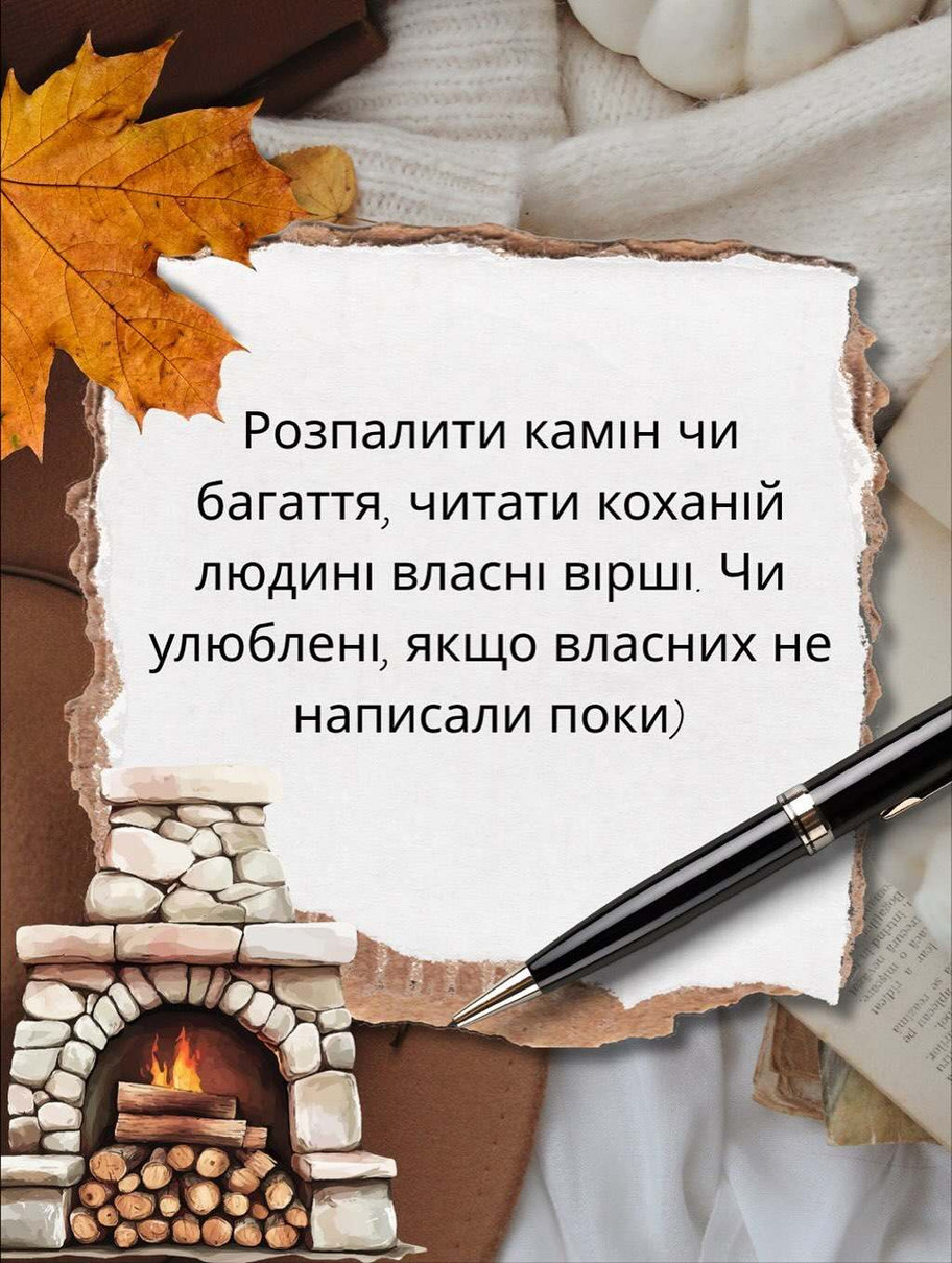 Також серед осінніх рекомендацій від Карпи - збирати жолуді та осіннє листя в букети, вибиратись на романтичні побачення за місто вдвох із коханою людиною, грітися коло каміна чи багаття, читаючи вірші.