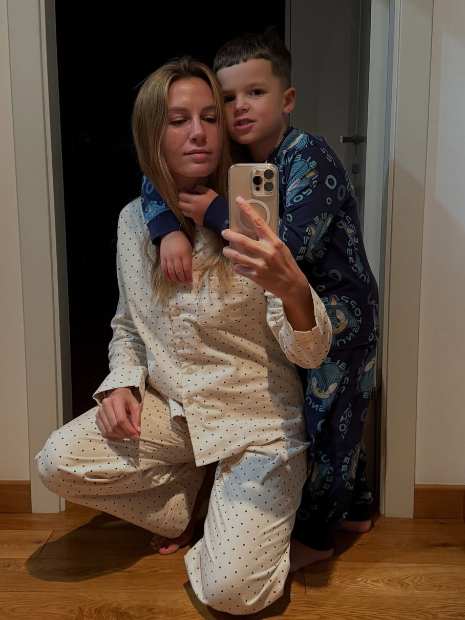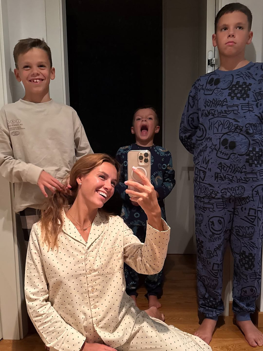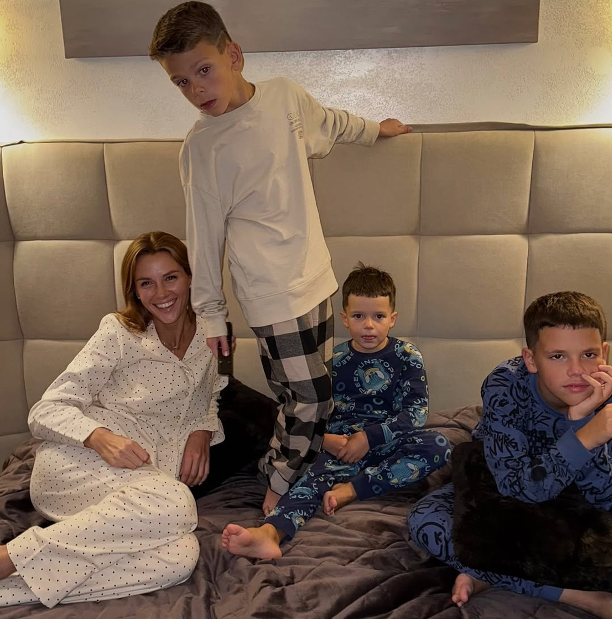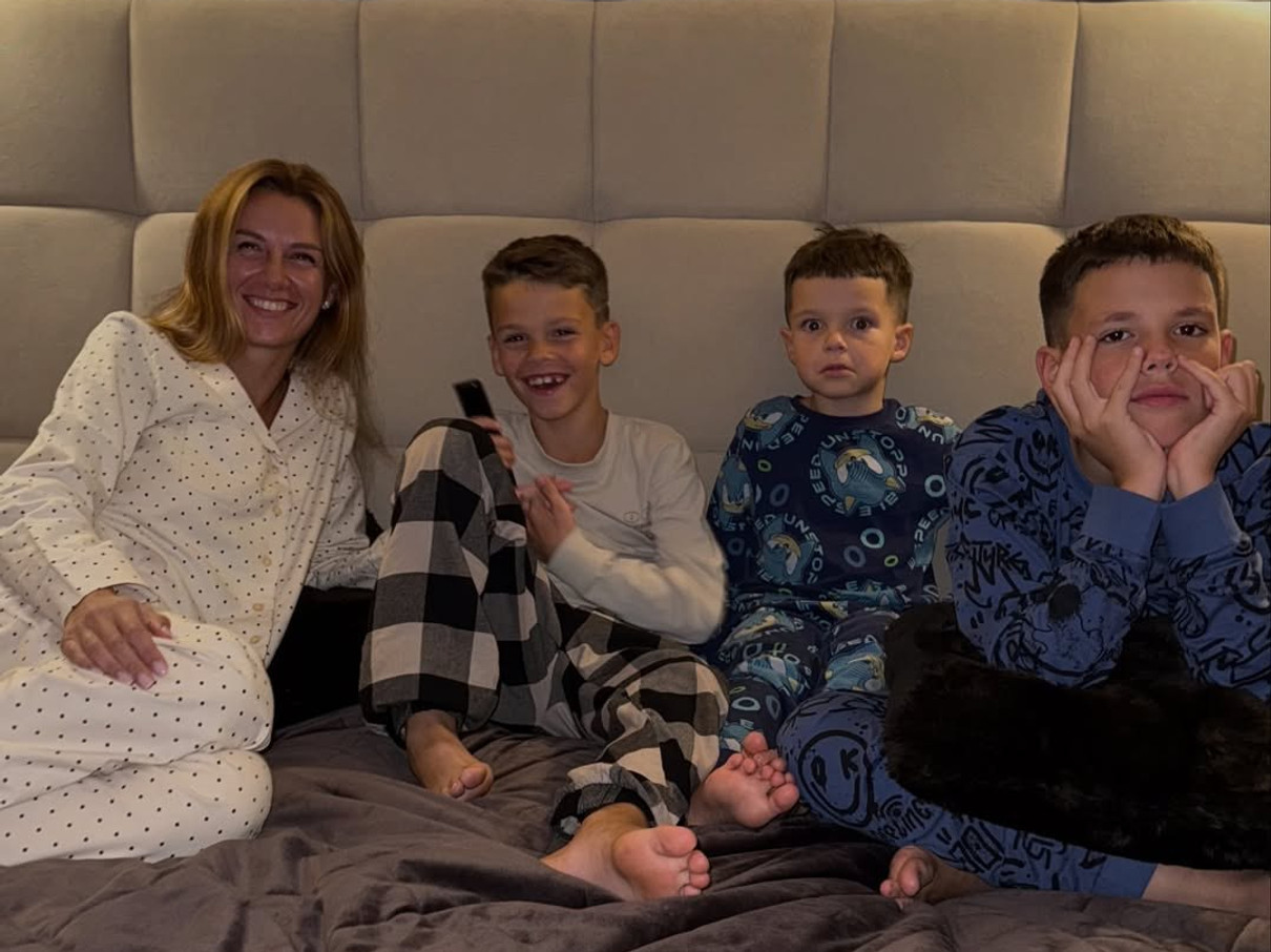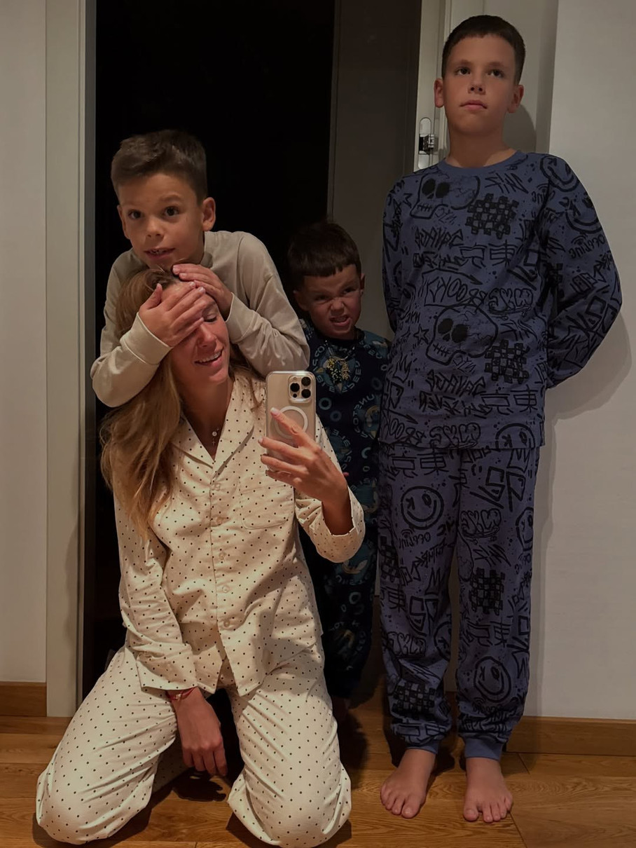 В Instagram вона опублікувала знімки, на яких разом із трьома синами, 12-річним Іваном, 7-річним Дмитром і 4-річним Олександром у піжамах бавилася на ліжку та дивилася фільм. Як виявилося, хлопчики ніяк не хотіли йти спати, тому батькам довелося влаштовувати їм веселощі: