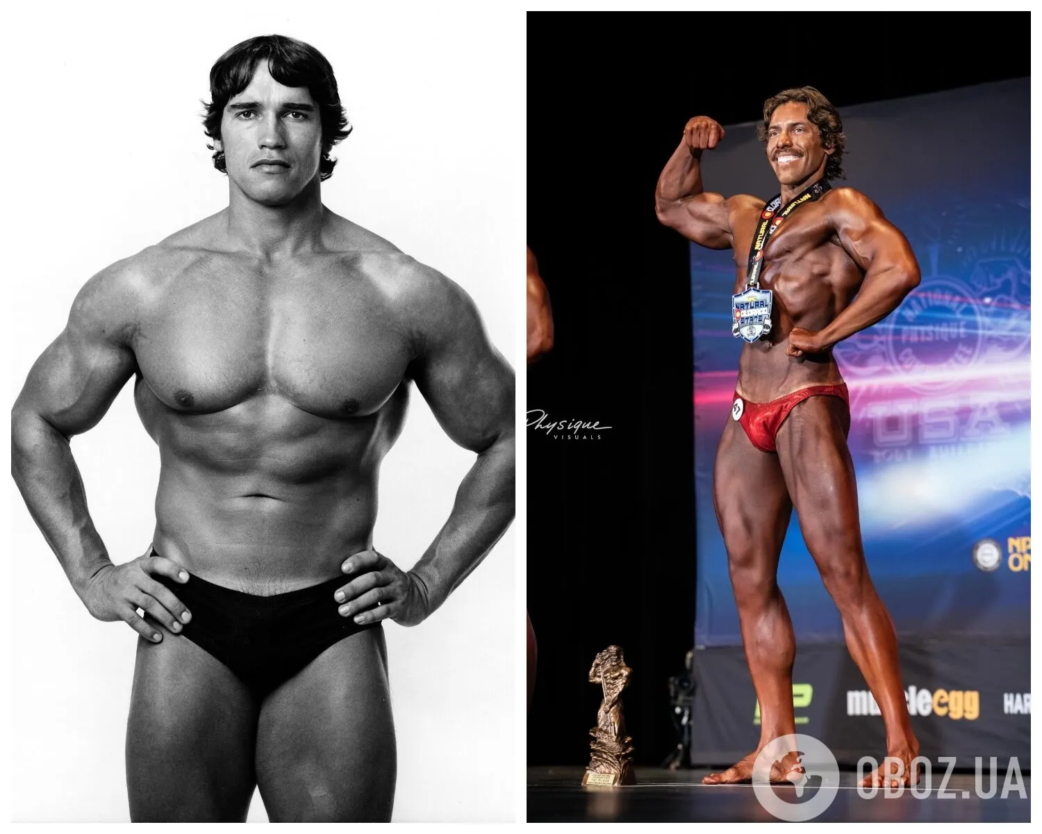 У віці 20–30 років Арнольд мав виразну мускулатуру, чіткий рельєф і пропорційну статуру, що стало еталоном для поколінь бодібілдерів. Джозеф, своєю чергою, демонструє схожі фізичні дані – широку спину, потужні руки та класичні пропорції, хоча його стиль ближчий до сучасної естетики.