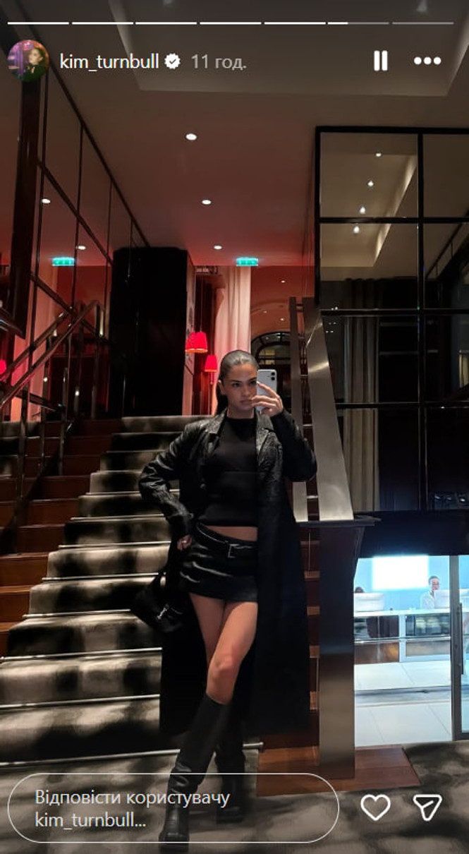 Кім похвалилася стильним образом, у якому з'явилася на показу коханого