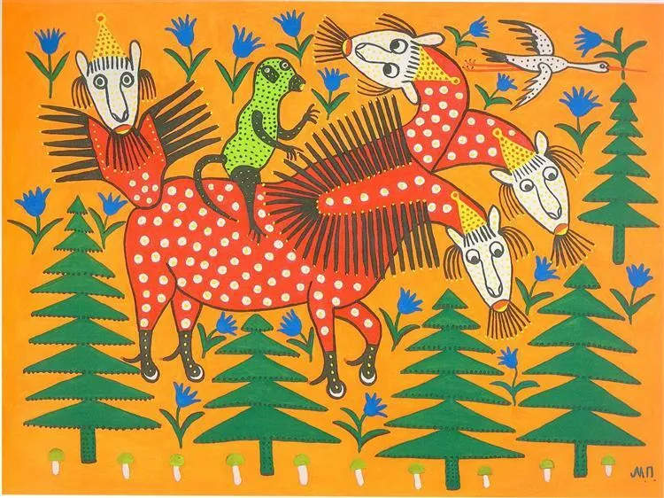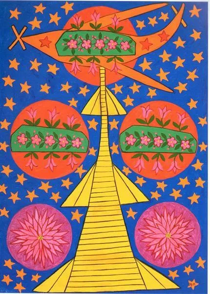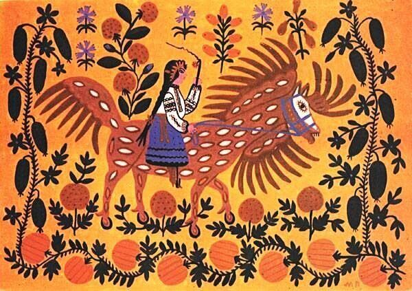 Свій творчий шлях Марія Примаченко почала з розпису власної хати. За однією з найвідоміших історій, вона, пасучи гусей, побачила дивного птаха, який загубив пір’я, а на землі залишилися різнокольорові смуги синього глею. Саме ним дівчина розмалювала стіни оселі квітами. Згодом у її роботах з’явилися фантастичні звірі, жар-птиці та яскраві рослини – образи, які згодом стануть упізнаваними у всьому світі.